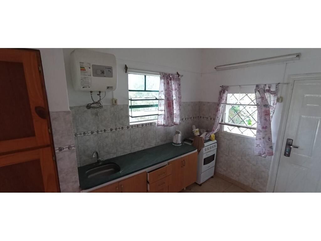 Living-comedor, cocina, 2 dormitorios, 1 baño completo, estufa a lena, aire acondicionado en un dormitorio, parrillero abierto, alero, cochera descubierta.