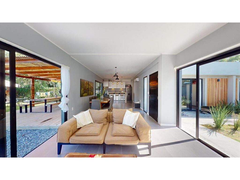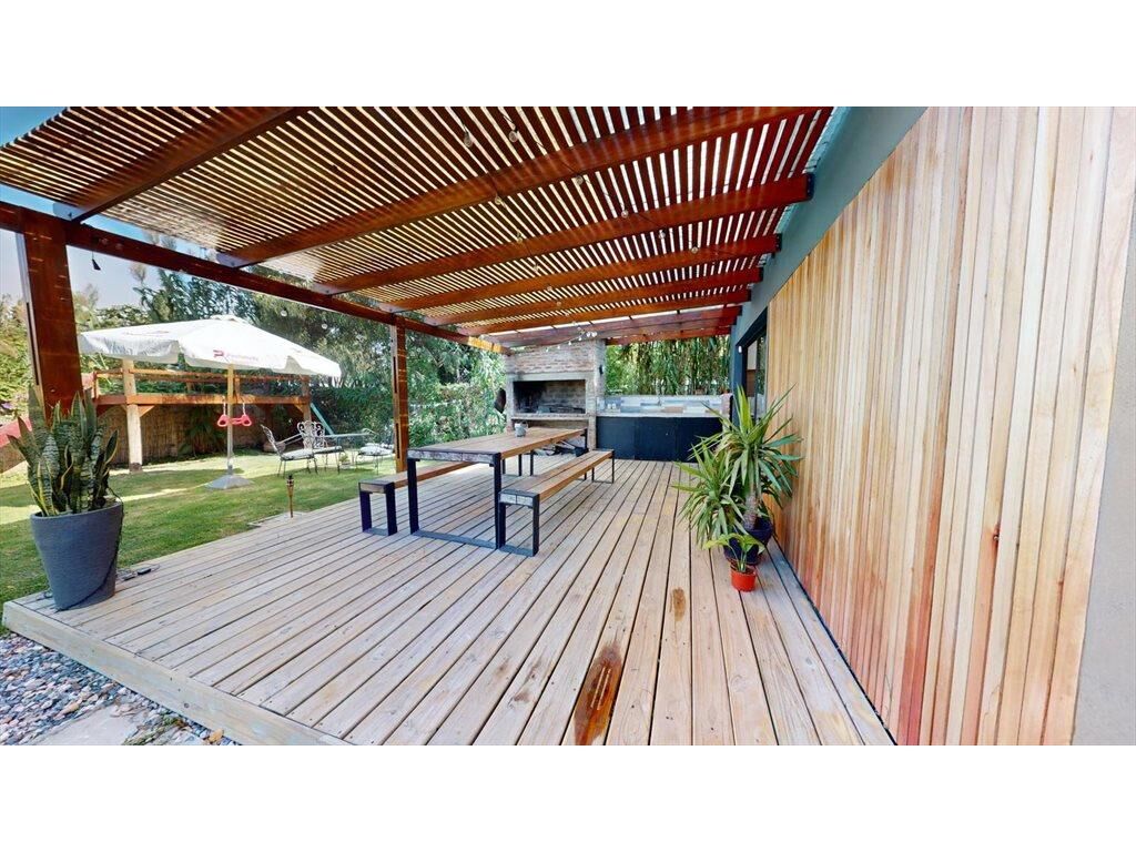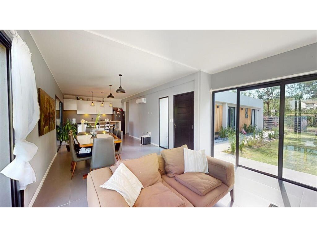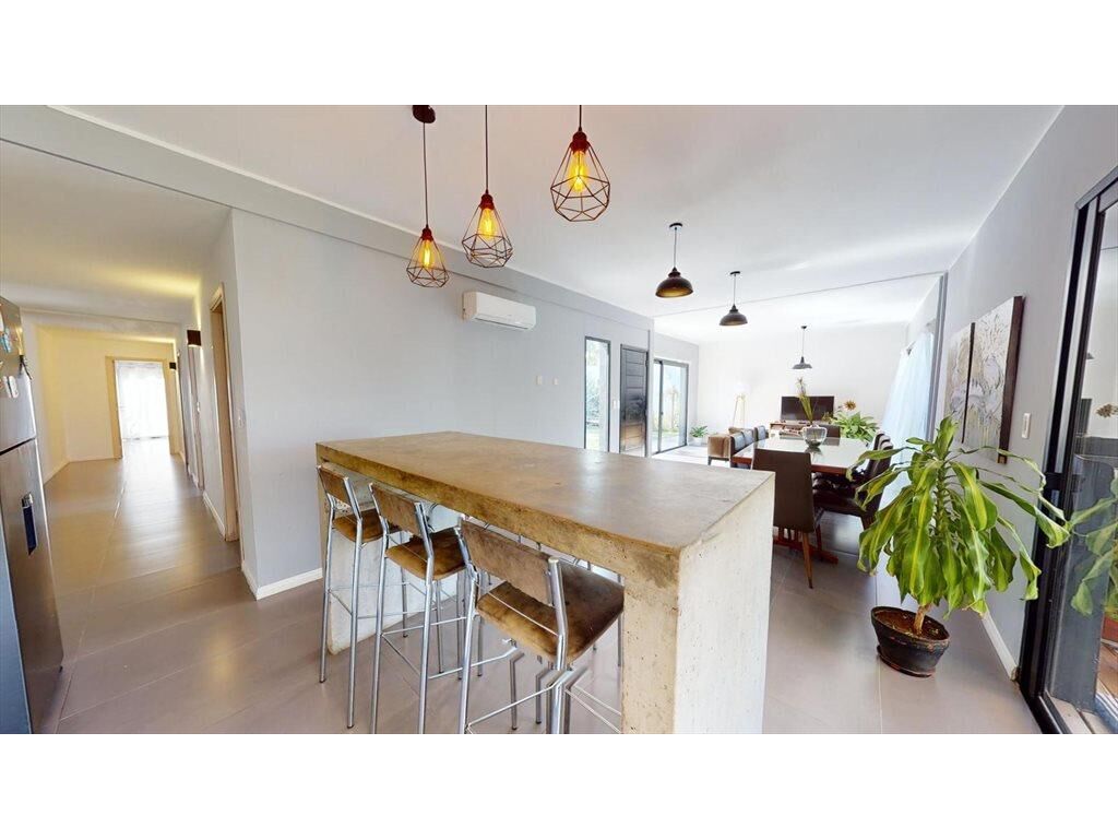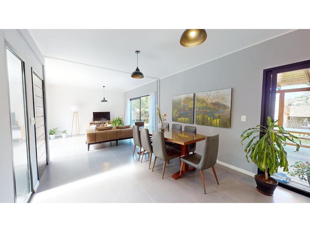 Desarrollada en un terreno de 495 m2. Cuenta con amplio living-comedor con cocina integrada e isla de hormigón, construcción tradicional con ticholo y revestimiento de yeso