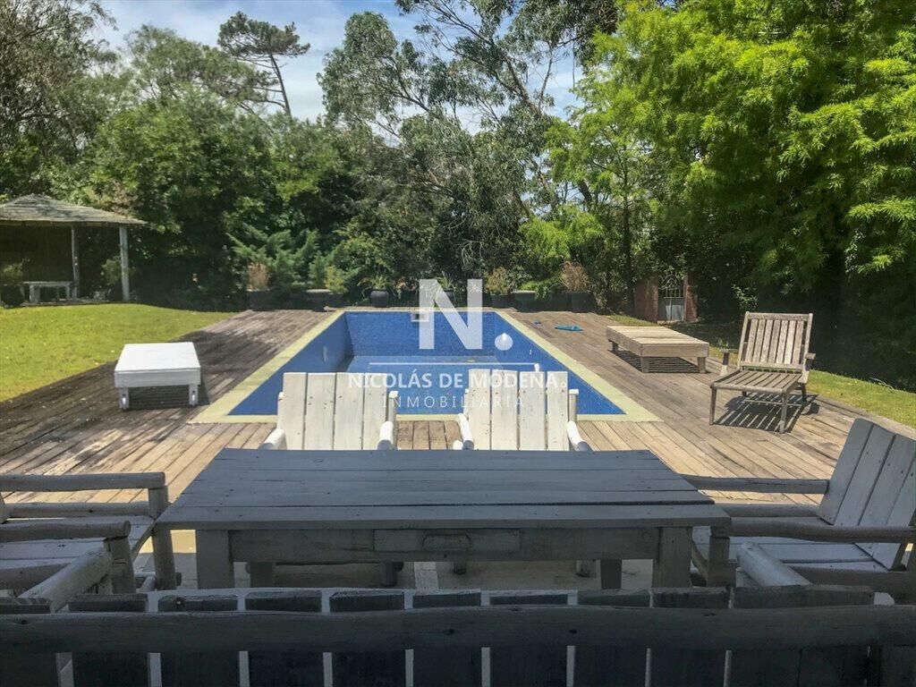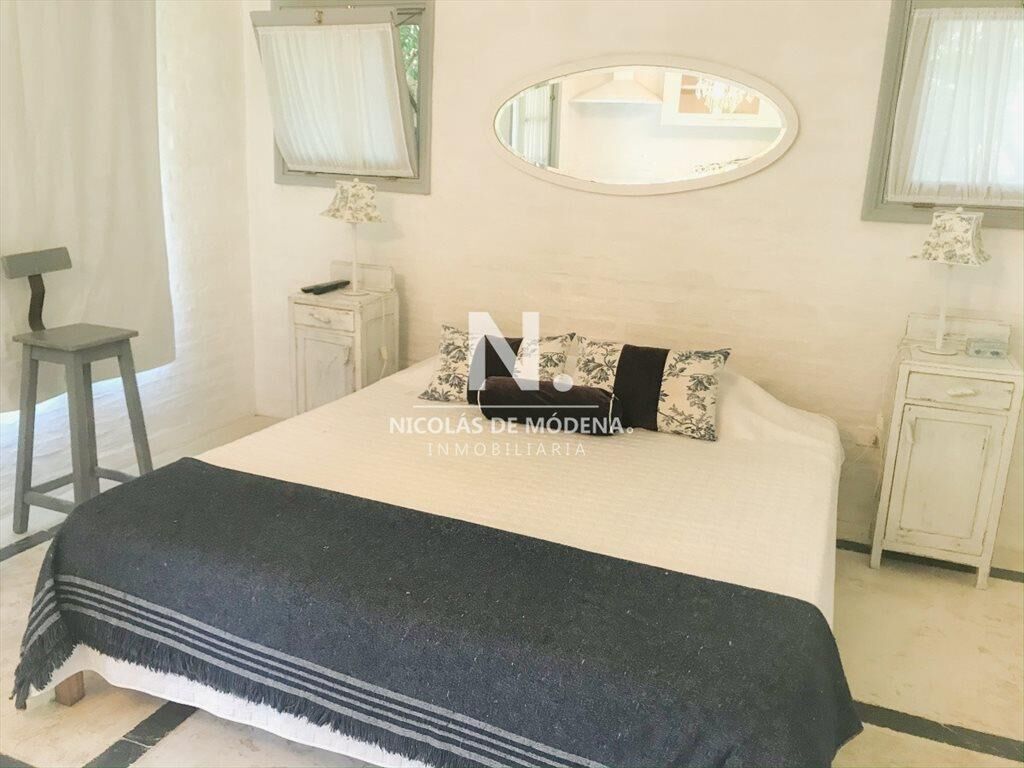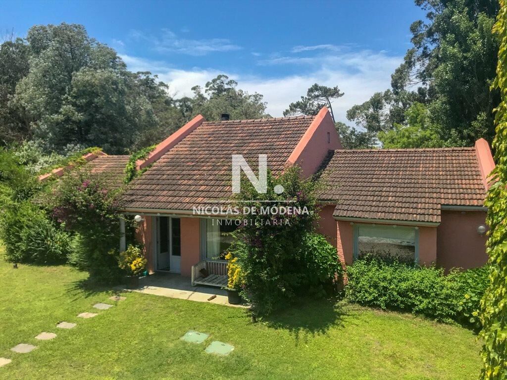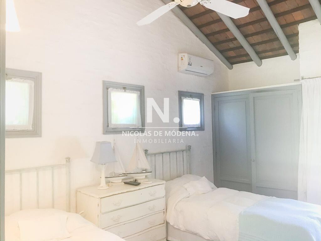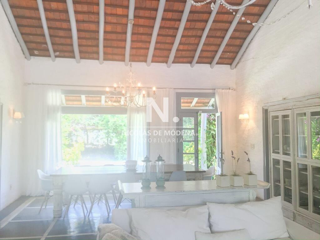 Propiedad de estilo Mediterráneo en La Barra. La casa principal cuenta con gran living-comedor con estufa a leña, amplios ventanales que integran las áreas exteriores. Cocina definida, master suite, 2 dormitorios secundarios con baño completo y medio dormitorio adicional. Independiente de la casa, gran zona de huéspedes formada por: loft con cocina y baño, 3 dormitorios con 3 plazas cada uno y otros 2 baños completos. Dependencia de servicio con baño. En total hay capacidad para 20 huéspedes. Gran barbacoa y jardín con piscina.