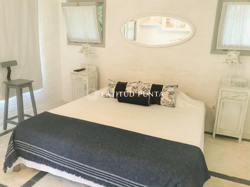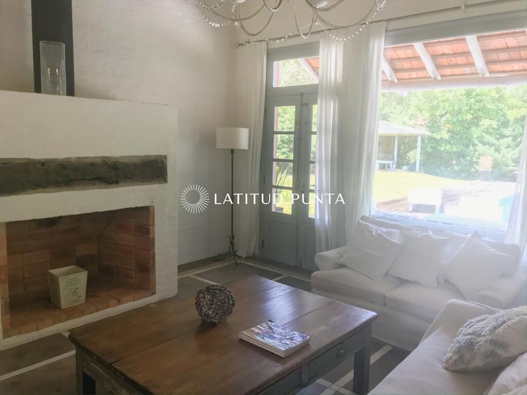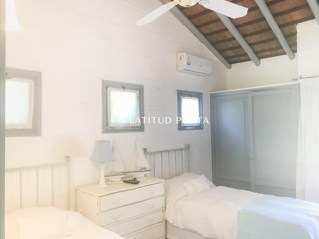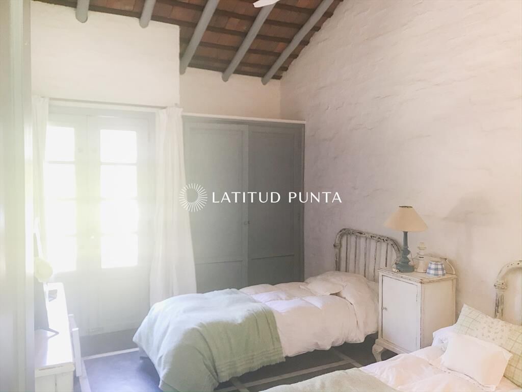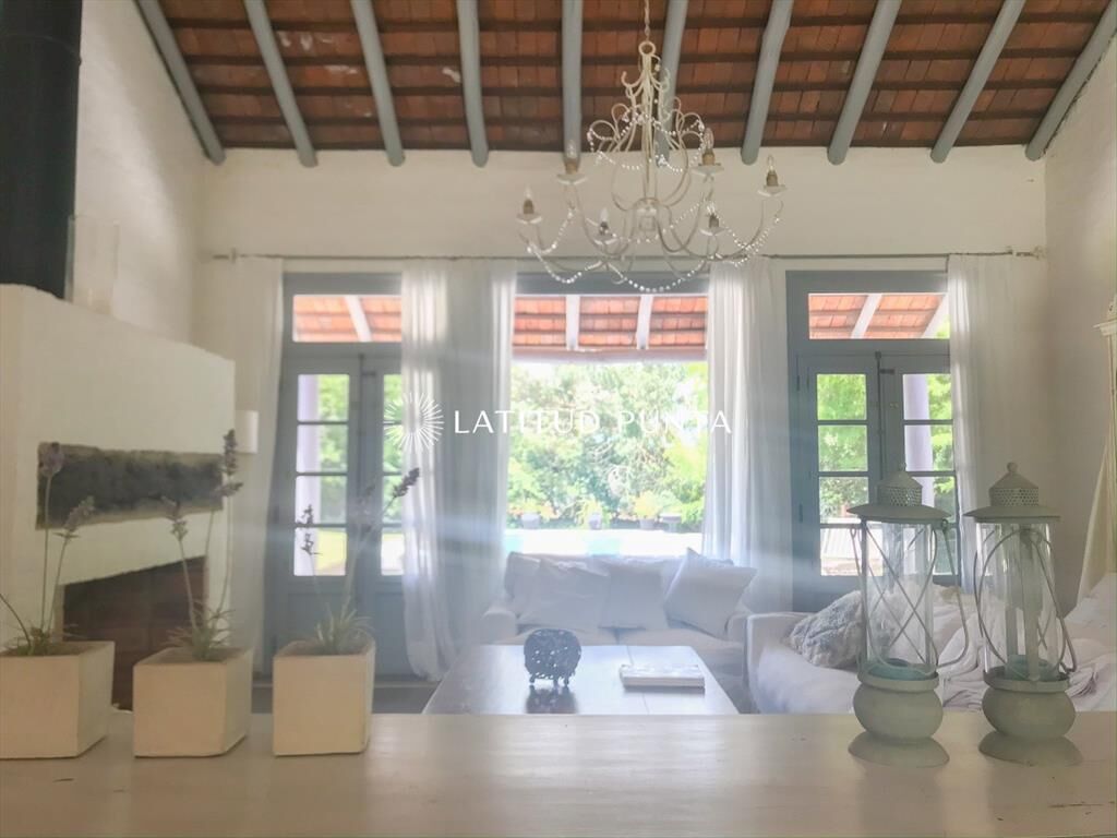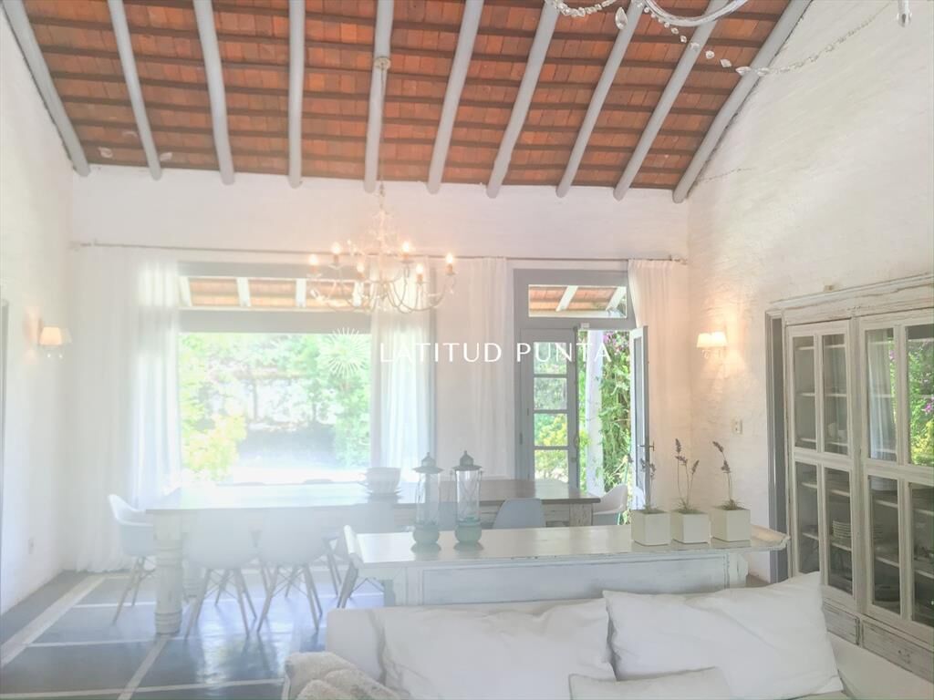 Propiedad de estilo Mediterráneo en La Barra. La casa principal cuenta con gran living-comedor con estufa a leña, amplios ventanales que integran las áreas exteriores. Cocina definida, master suite, 2 dormitorios secundarios con baño completo y medio dormitorio adicional. Independiente de la casa, gran zona de huéspedes formada por: loft con cocina y baño, 3 dormitorios con 3 plazas cada uno y otros 2 baños completos. Dependencia de servicio con baño. En total hay capacidad para 20 huéspedes. Gran barbacoa y jardín con piscina.