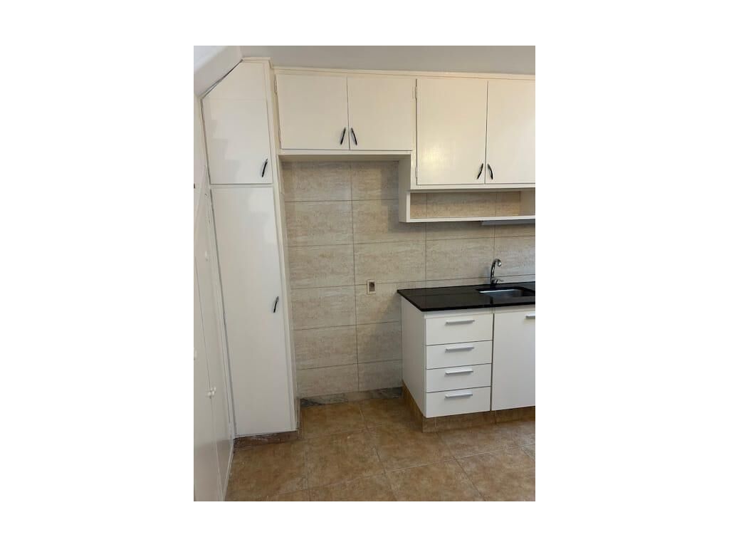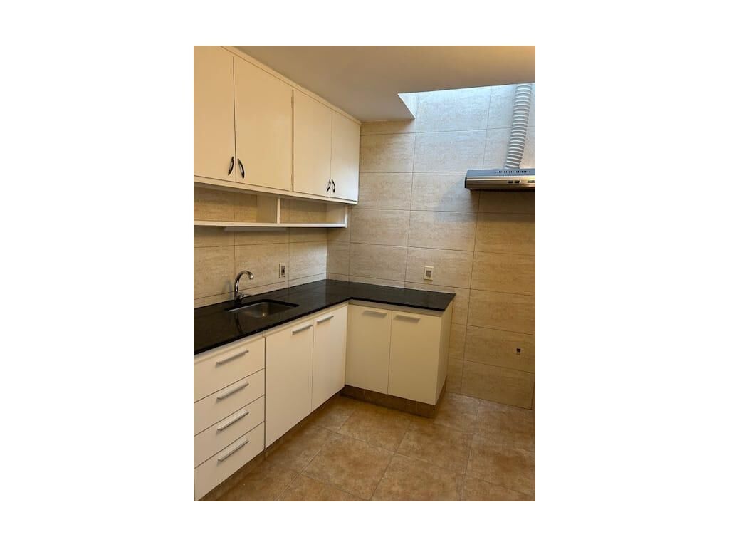 Cocina definida con placares en bajo mesada y aéreos y campana extractora.