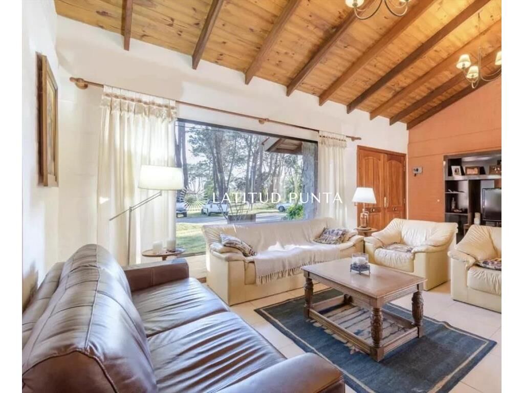 Casa de 4 dormitorios, 3 baños, amplio espacio de sala de estar y comedor, cocina definida. Piscina y un extenso terreno en una ubicación excepcional a pocas cuadras de playa Mansa.