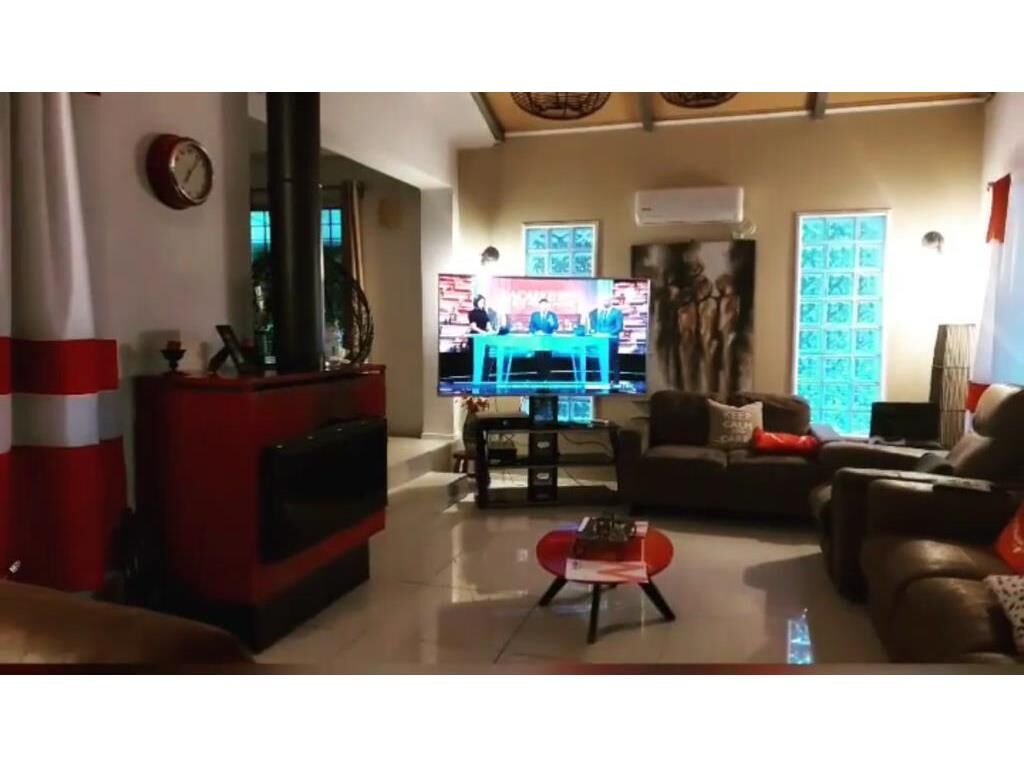 En una muy linda zona de la ciudad de Nueva Helvecia encontramos esta casa con piscina techada, mas de 80 m2 de barbacoa y parrilla. Se compone de un primer nivel que forma un espacio continuo entre la gran cocina , el living y el comedor, todo con pisos de porcelanato. Sala de juegos con comunicación al resto de los dormitorios y escritorio. En el segundo nivel encontramos un gran dormitorio en suite, con balcón y vestidor. También cuenta con galpón taller
