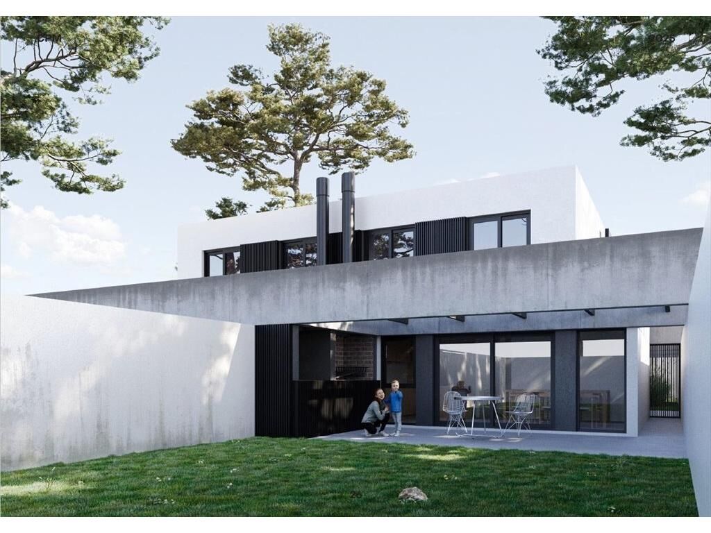 Casa de estilo minimalista de cuatro dormitorios, uno en planta baja que puede ser utilizado como escritorio. Living al frente y jardín de 35.3 mt2.