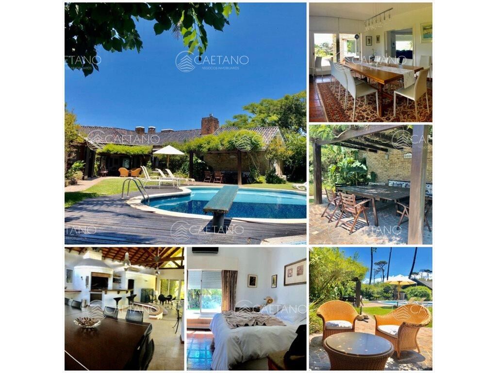 Casa en alquiler anual y en venta Consta de 4 dormitorios + 2 dormitorio de huéspedes + dep. servicio + casa de caserosGran barbacoa cerradaPiscina y hermoso parqueUbicada a 1 cuadra de la playa500 mts construidos2600 mts de terrenoAires acond. en todos los dormitoriosCaetano Negocios Inmobiliarios