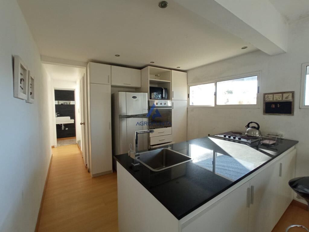 cocina integrada al comedor, dividida por una isla. equipamiento nuevo, cuenta con heladera con frezar, microondas, anafe sobre mesada, horno empotrado en mueble