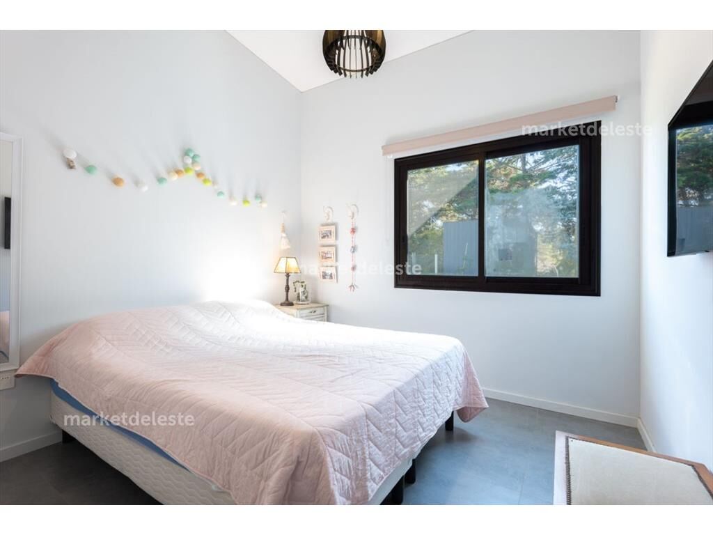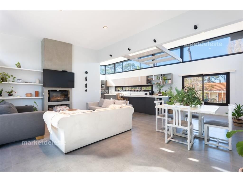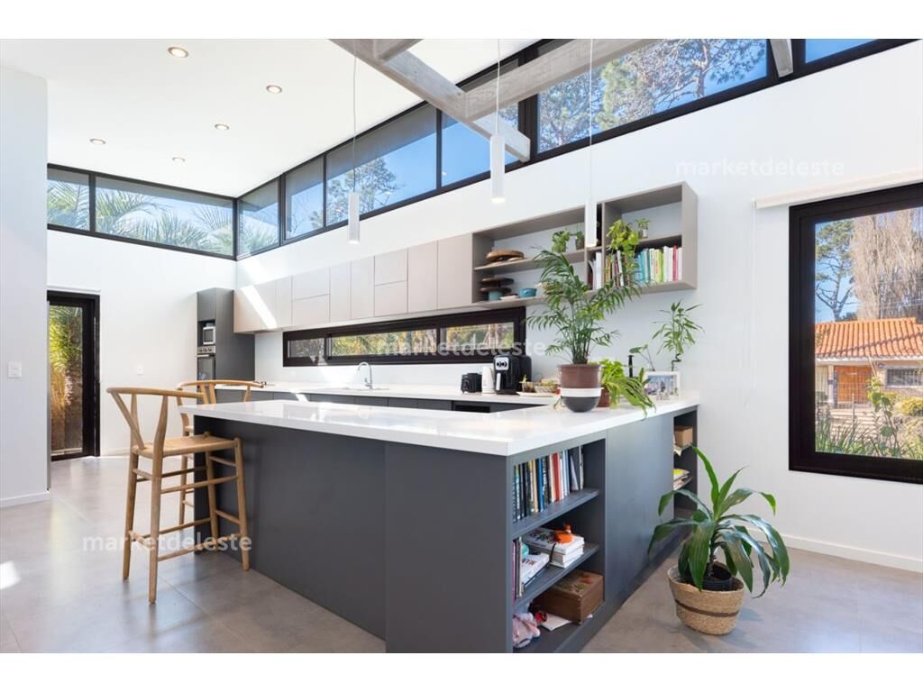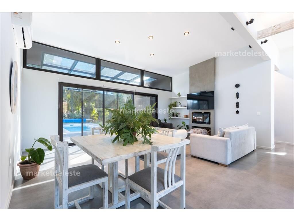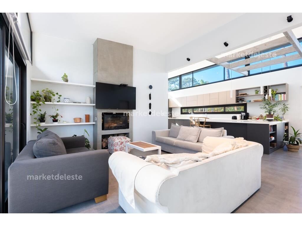 Moderna casa ubicada sobre un lote de 750 mts en la zona de Punta Shopping. Cuenta con 3 dormitorios en suite, living comedor integrado con la cocina. Parrillero a continuación del living techado con aluminio y vidrio, generando una sensación de unión entre ambos espacios. Deck de madera curada alrededor de la casa. Posee además cochera para dos autos, losa radiante a gas en toda la casa, piscina climatizada inverter con salinizador, aire acondicionado en todos los ambientes, sistema de cámaras, aberturas en vidrios DVH, doble pared OSB con aislación térmica acústica y de filtraciones de 6 capas en techo y paredes.