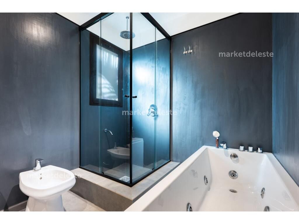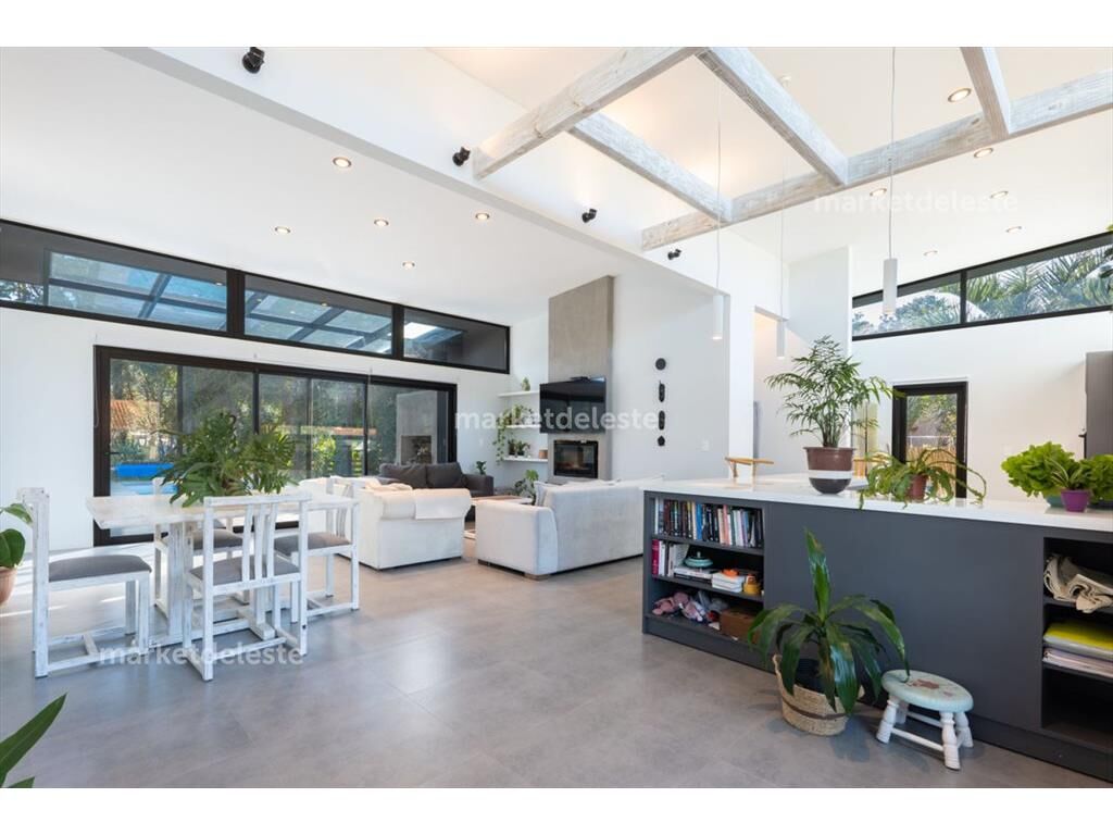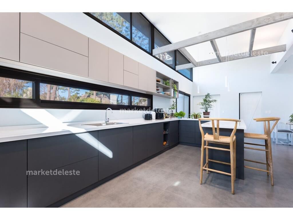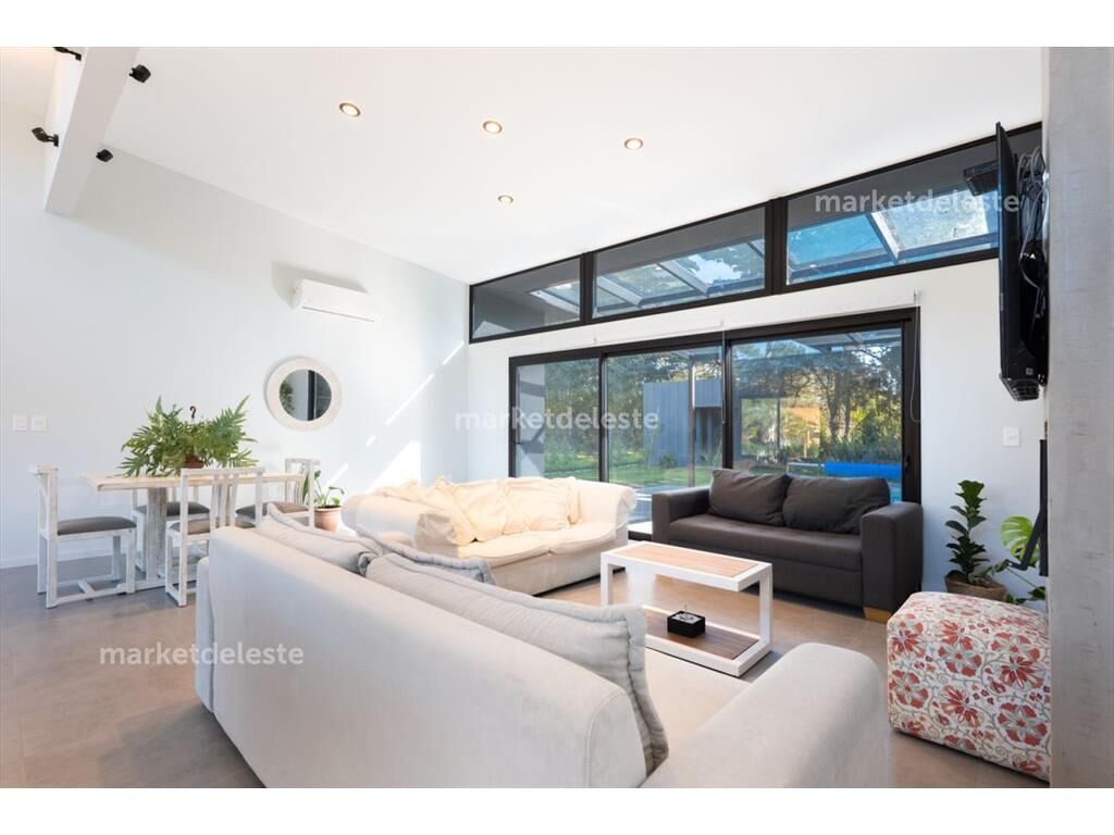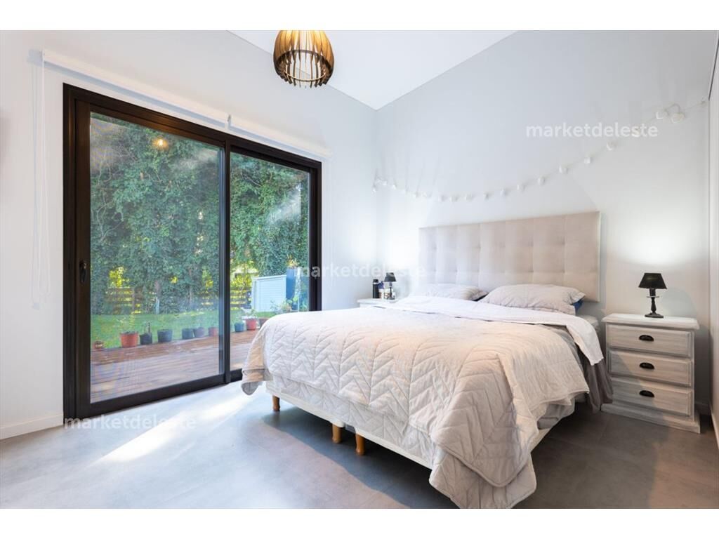 Moderna casa ubicada sobre un lote de 750 mts en la zona de Punta Shopping. Cuenta con 3 dormitorios en suite, living comedor integrado con la cocina. Parrillero a continuación del living techado con aluminio y vidrio, generando una sensación de unión entre ambos espacios. Deck de madera curada alrededor de la casa. Posee además cochera para dos autos, losa radiante a gas en toda la casa, piscina climatizada inverter con salinizador, aire acondicionado en todos los ambientes, sistema de cámaras, aberturas en vidrios DVH, doble pared OSB con aislación térmica acústica y de filtraciones de 6 capas en techo y paredes.