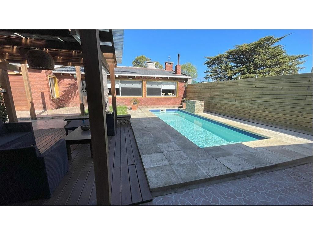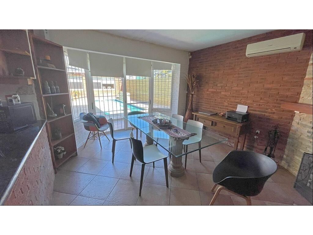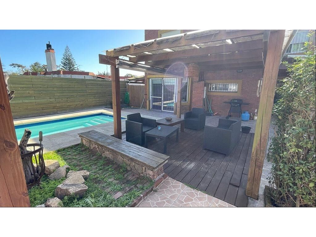 CW241279Abajo :Living Cocina comedor Cuarto oficina Baño Arriba:3 dorm1 en suite Y otro baño para los otros 2Loza radiante en piso de arriba Estufa alto rendimiento para toda la casa Afuera:Piscina climatizada Barbacoa Horno pizzero y parrilla Deck exterior grande todo techado Doble pared de ladrillo con cámara . Riego Rejas en todo abajo
