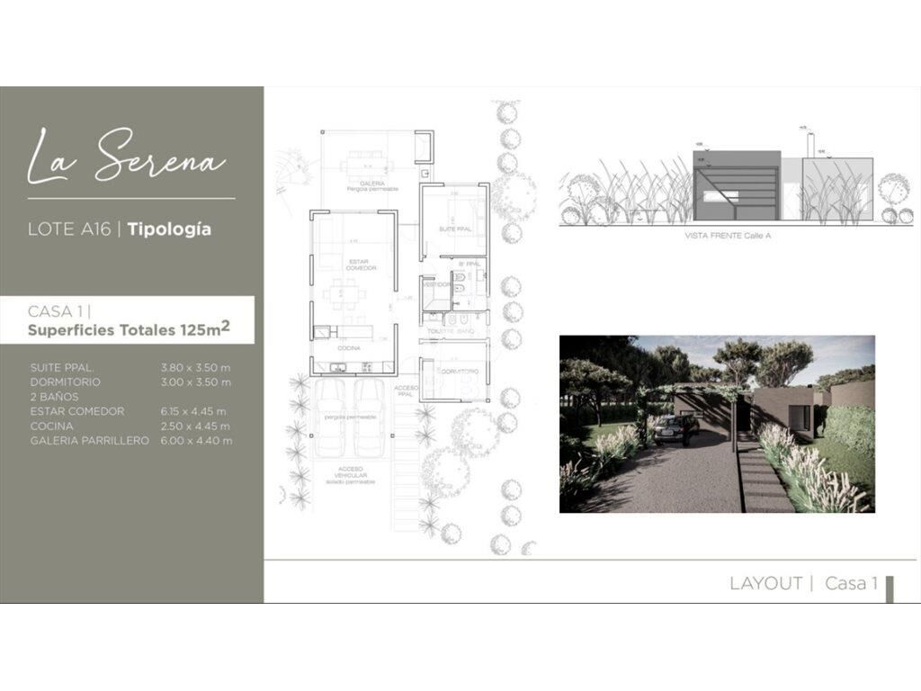 La misma cuenta con 2 dormitorios, 1 de ellos en suite, 2 baños, living comedor con cocina integrada, parrillero con pérgola y estacionamiento dos autos.