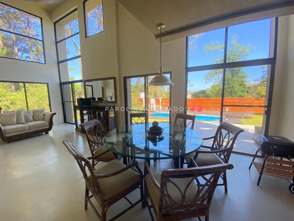 Cuenta con garage (con entrada al living) y en el fondo tiene piscina al aire libre y un parrillero techado.