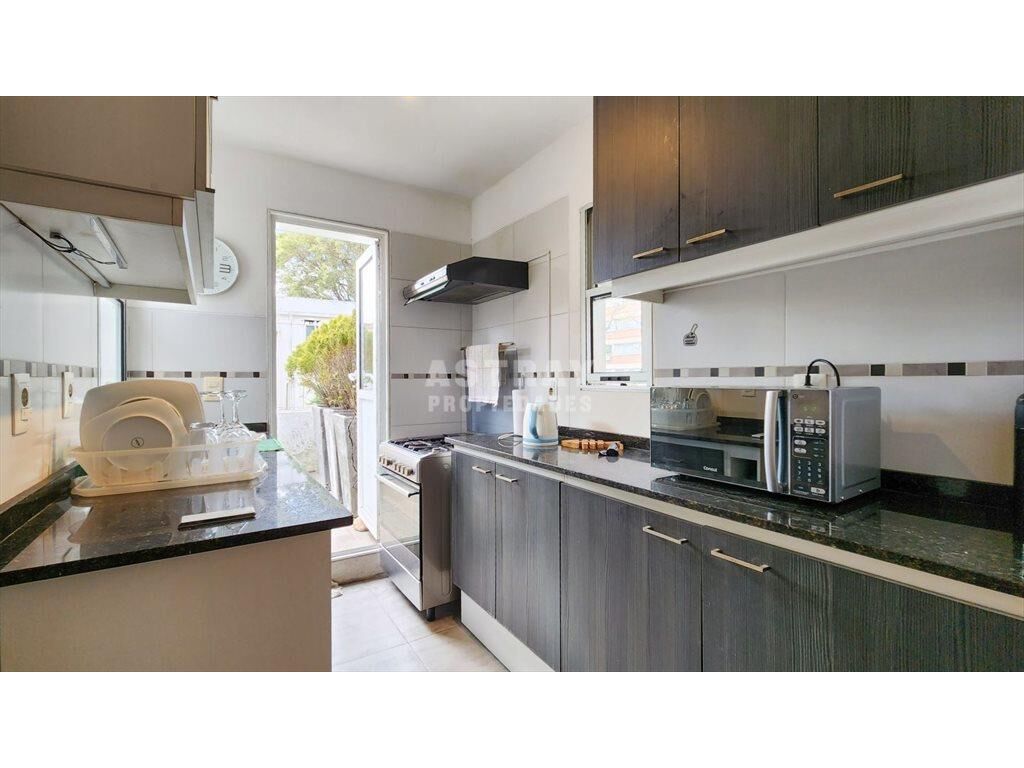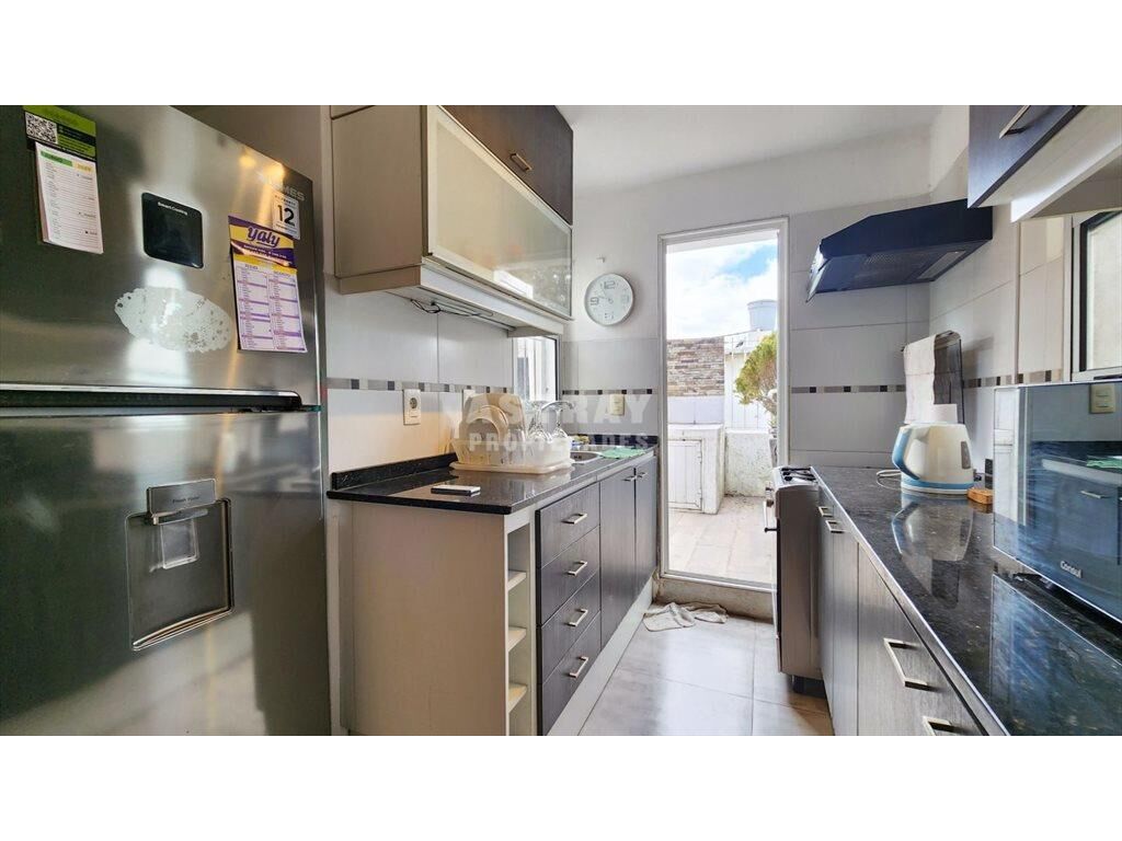 Cocina definida con placares bajo y sobre mesada, salida a terraza con parrillero de uso exclusivo.