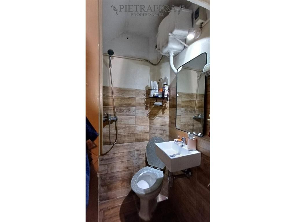 Monoambiente (antes era garaje), opción para volver a usarlo como tal con salida directa a la calle, con puerta y ventana, está equipado y listo par habitar, con cocina, espacio para cama y muebles, un baño chico y una despensa para guardar objetos.