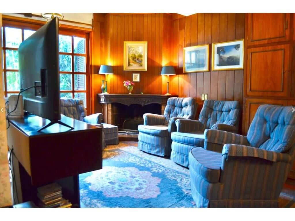 - Living principal al frente con hogar y divisor en madera. Puerta principal en madera de roble.