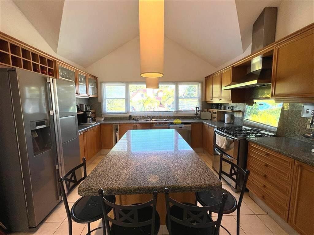 En cuanto a la distribución, en la Planta Baja cuenta con dos dormitorios en Suite (la Principal y la de huéspedes), amplio living/comerdor/parrillero interno con la posibilidad de integrar los tres ambientes, Toilette, Amplia cocina con isla, dormitorio de servicio en suite, lavadero y garage cubierto y descubierto. El el exterior, una amplia galería, piscina cercada con solarium de lapacho, vestuario con ducha completa, parrillero exterior, huerta y un precioso jardín con una vegetación impactante totalmente cercado.