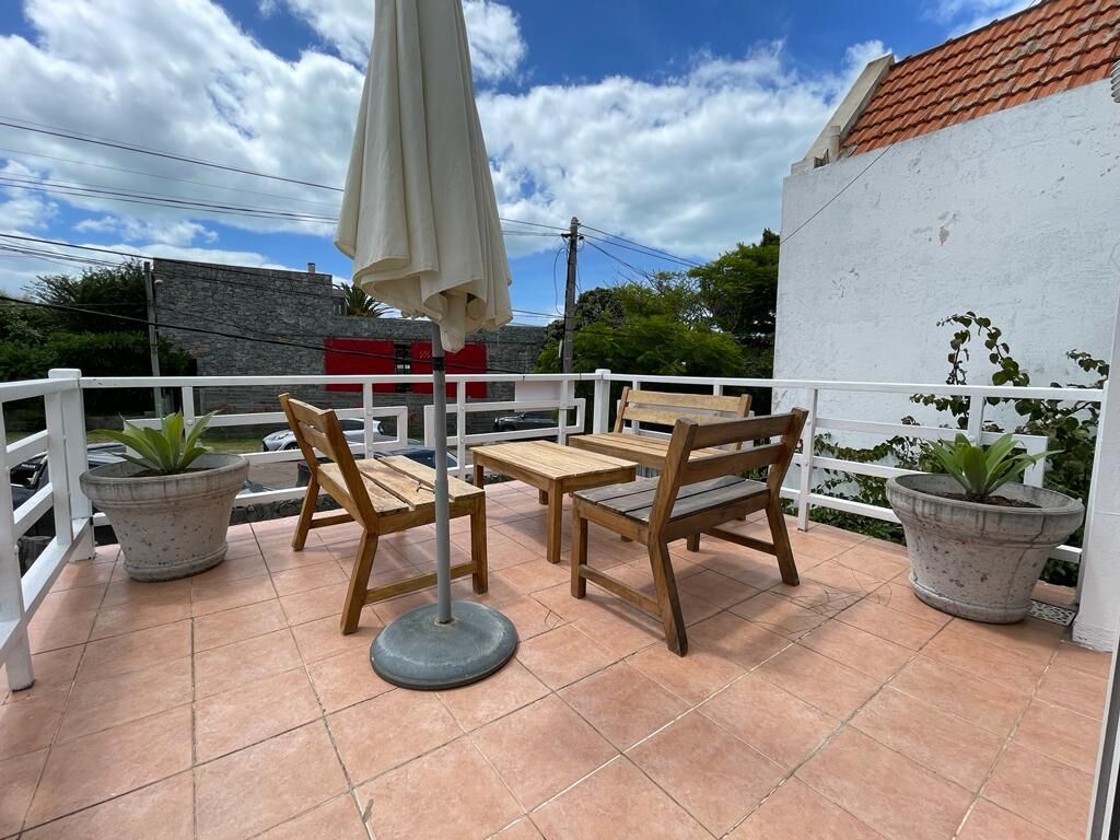 Exterior: pequeño jardín y parrillero móvil