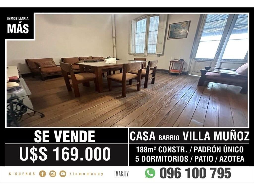 Venta de Casa 5 DORMITORIOS en Villa Muñoz, Montevideo