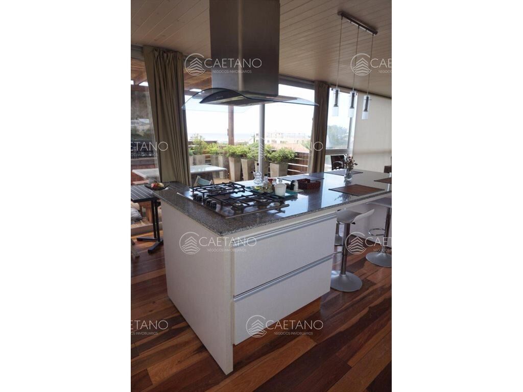 En planta alta living comedor con cocina integrada, todo con muy buenas dimensiones, mucha luz y vista al mar. Dos balcones, uno con un juego de living exterior y el otro con el parrillero.
