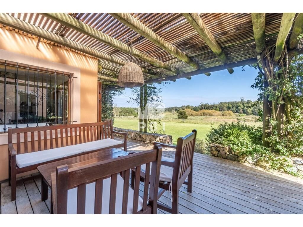 Chacra de 5 hectáreas con casa principal de 5 dormitorios, living comedor y cocina equipada. Cuenta con barbacoa, piscina y casa de huéspedes de 2 dormitorios, living comedor y cocina integrada. Entorno totalmente parquizado, tajamar y pozo de agua.