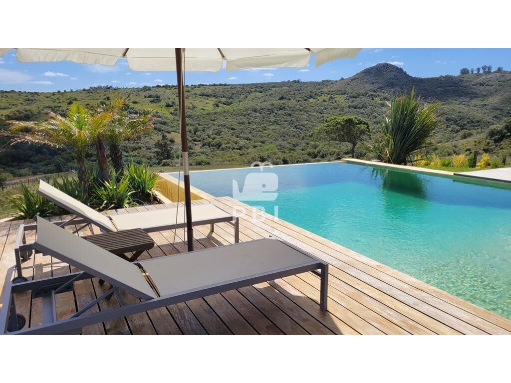 La casa principal tiene 3 dormitorios y 2 baños (uno en suite con sala de estar y vestidor), una sala abierta, comedor y cocina con desayunador,