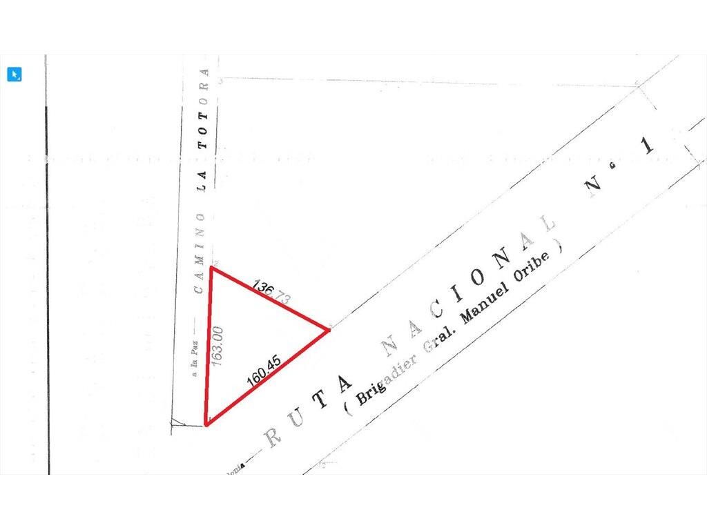 Excelente fracción de 1 ha en esquina, sobre Ruta 1 y Camino de los Colonos (Totora). Ubicación estratégica próxima a Colonia Valdense y Nueva Helvecia, donde se desarrolla actualmente un nuevo tramo de carretera doble vía (Montevideo-Colonia).
