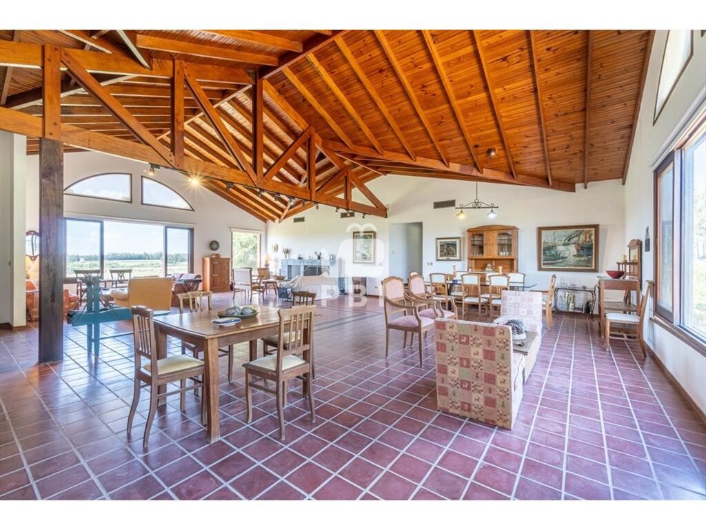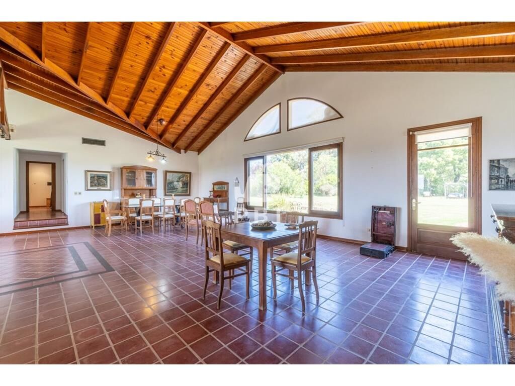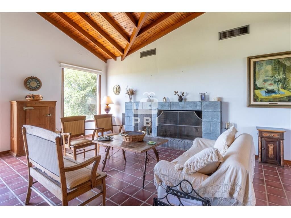 Casa principal de 400 m2. Con un amplio living comedor con estufa a leña, cocina definida, 5 dormitorios, uno de ellos en suite, 3 baños, escritorio y un toilette.