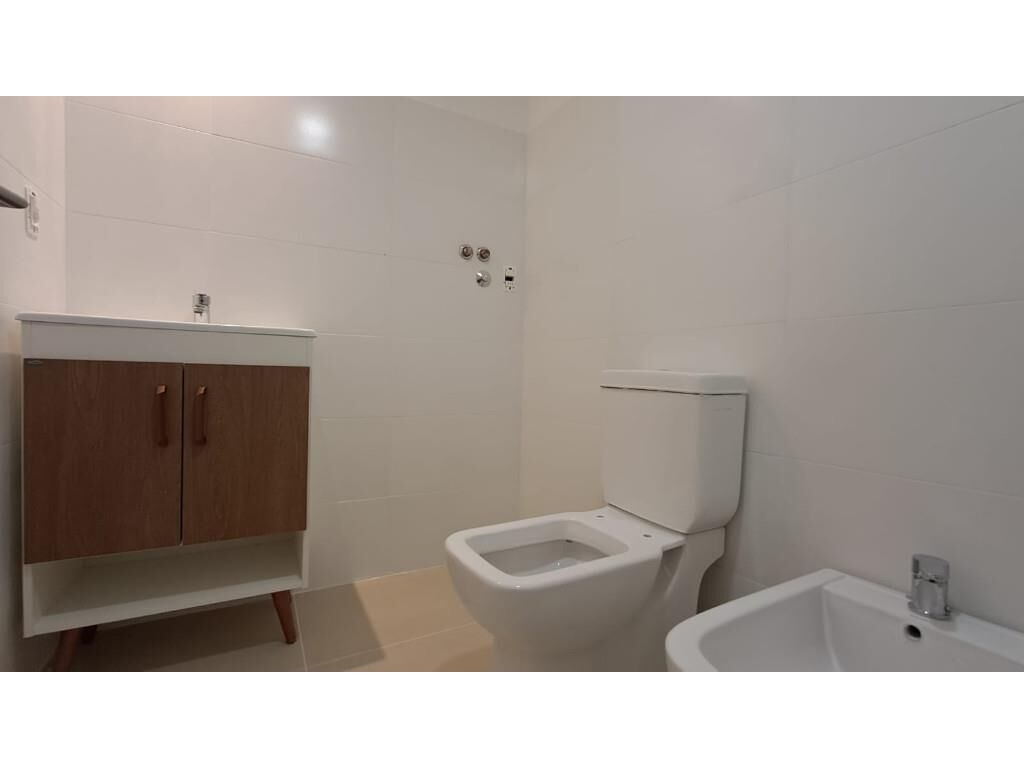 dormitorios con piso flotante y un baño completo de buen tamaño, bacha