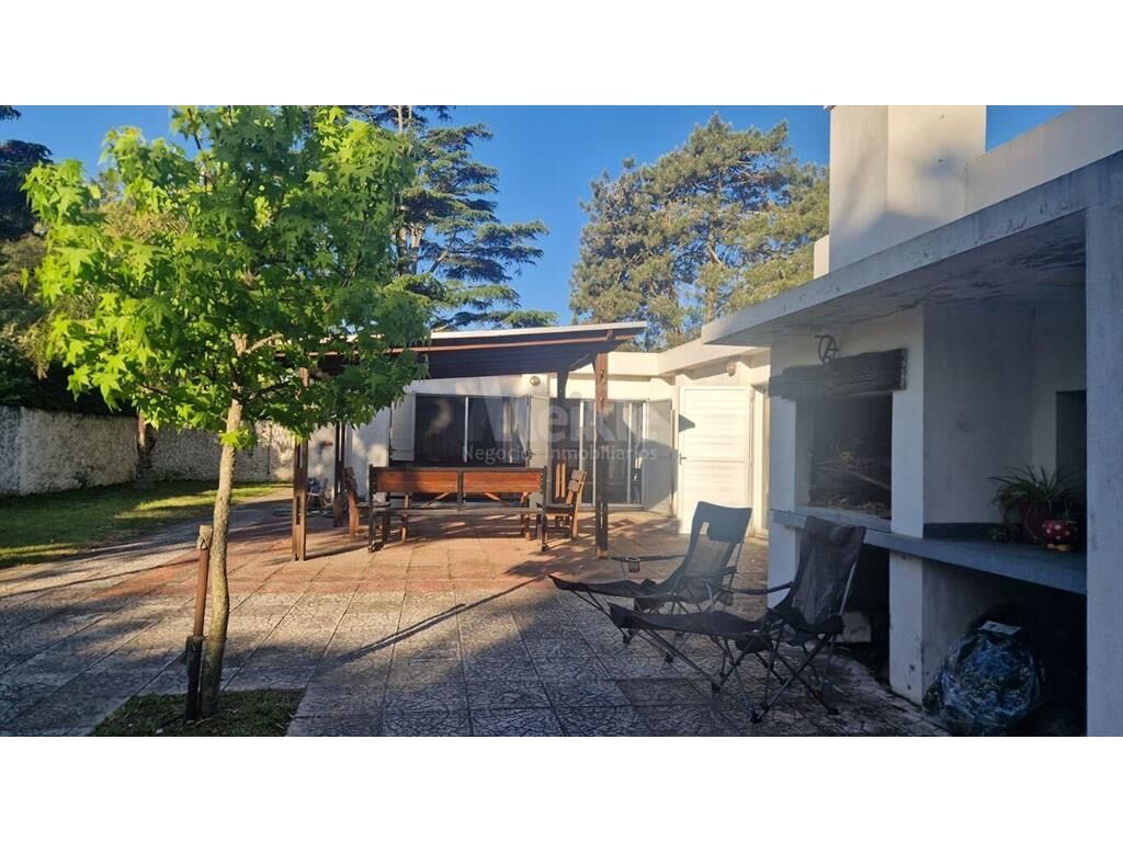Excelente construccion por la zona del arroyo en Pinar sur. Ambientes grandes. Hall de entrada. Living con estufa leña. Estar. Comedor con salida por puerta ventana. Cocina con lavadero independiente y salida. Tres dormitorios en suite. El principal con vestidor. Tres baños completos mas toilette. Parrillero. Cochera. Cercada. Gran parque.