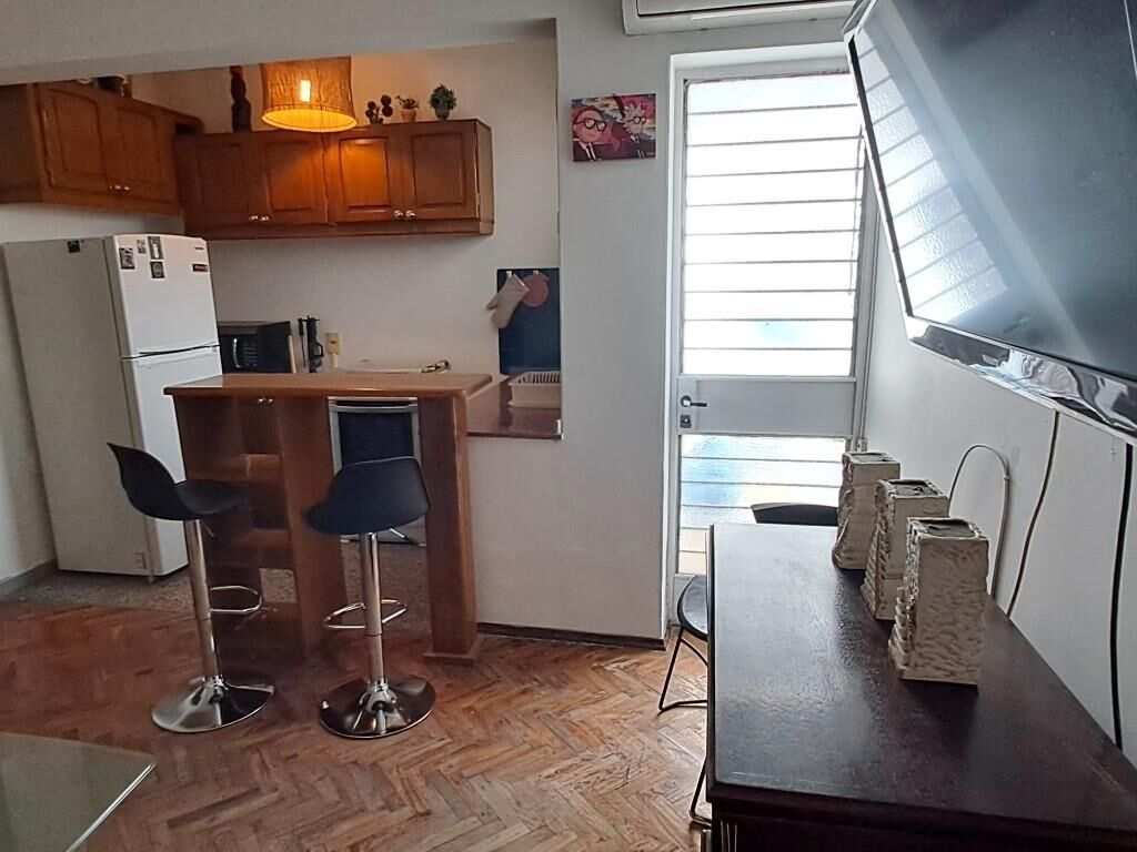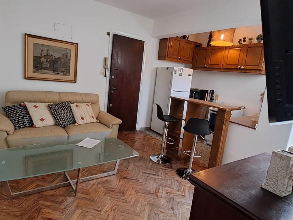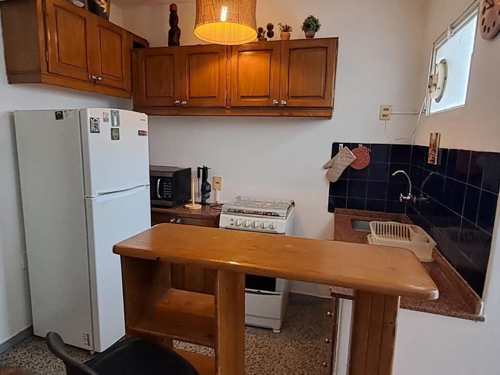 Living comedor. Cocina equipada: heladera con frezzer, cocina 4 hornallas con horno, tostador, cafetera y todo lo necesario para cocinar.