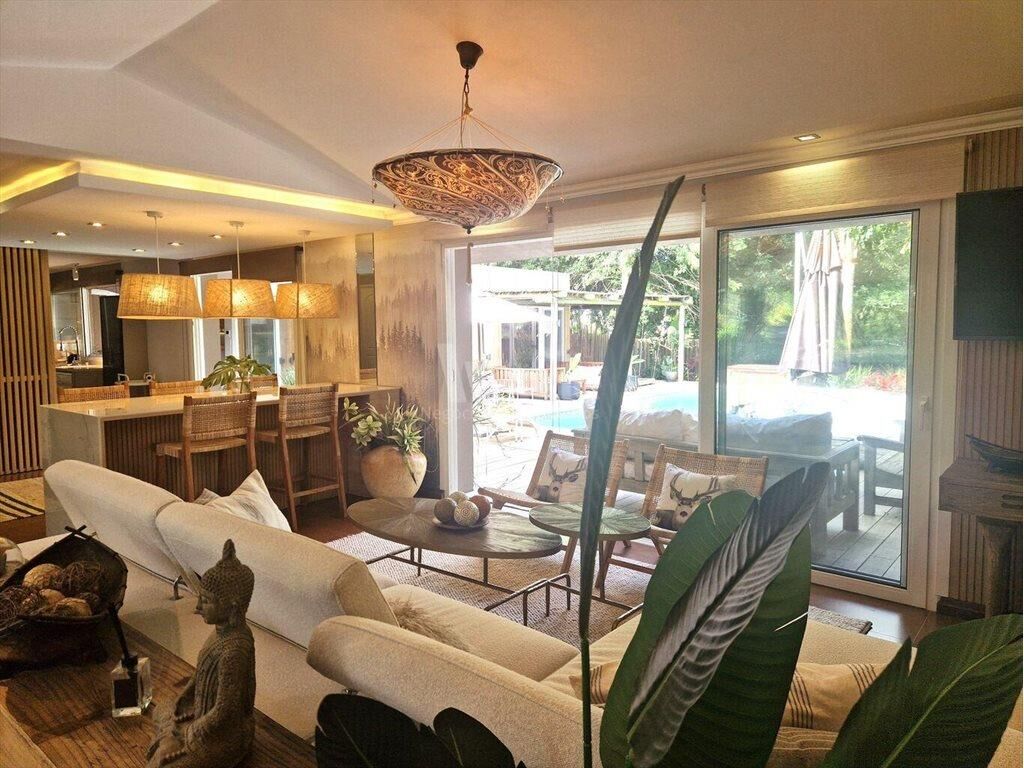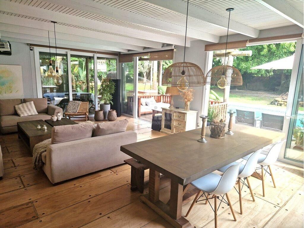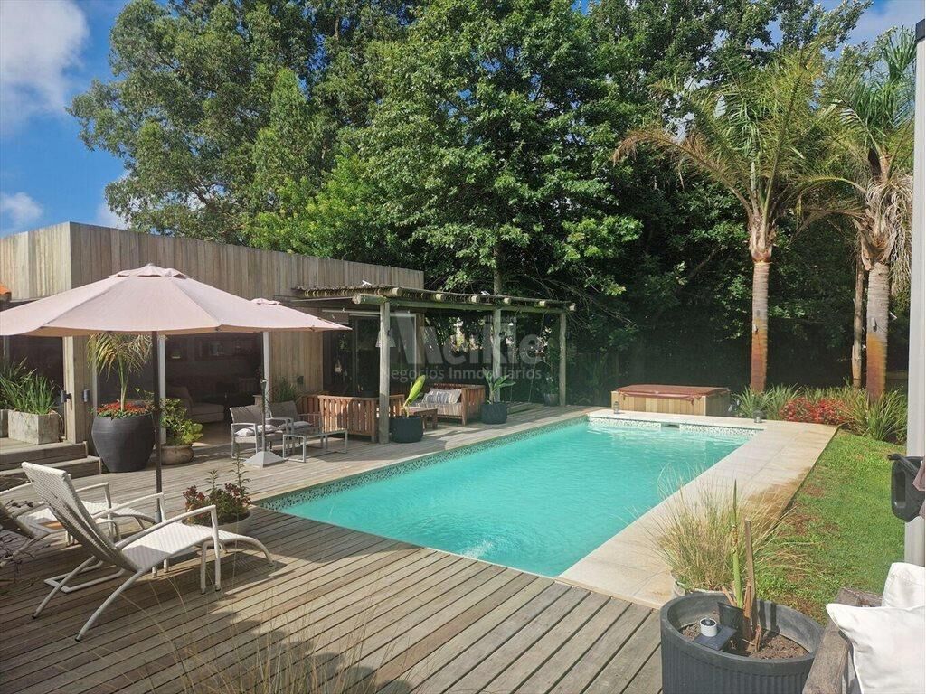 Con 563 metros construidos distribuidos de esta manera: Hall de entrada. Estar con isla comedor integrada a la cocina. Living con estufa a leña y salida al jardin con grandes ventanales. Cocina. Lavadero. Estar intimo en el area de los 3 dormitorios. Los dormitorios con hermosas vistas al jardin.. El principal en suite con vestidor. Otro baño completo. Toilette. Servicio completo. Losa radiante con bomba de calor.