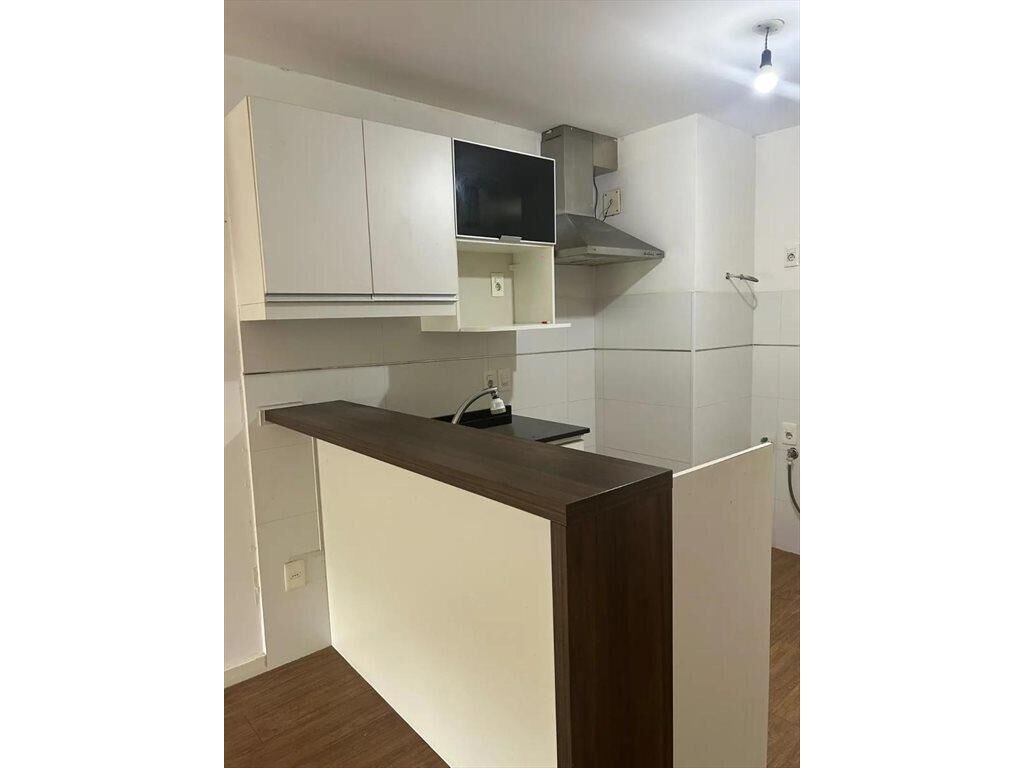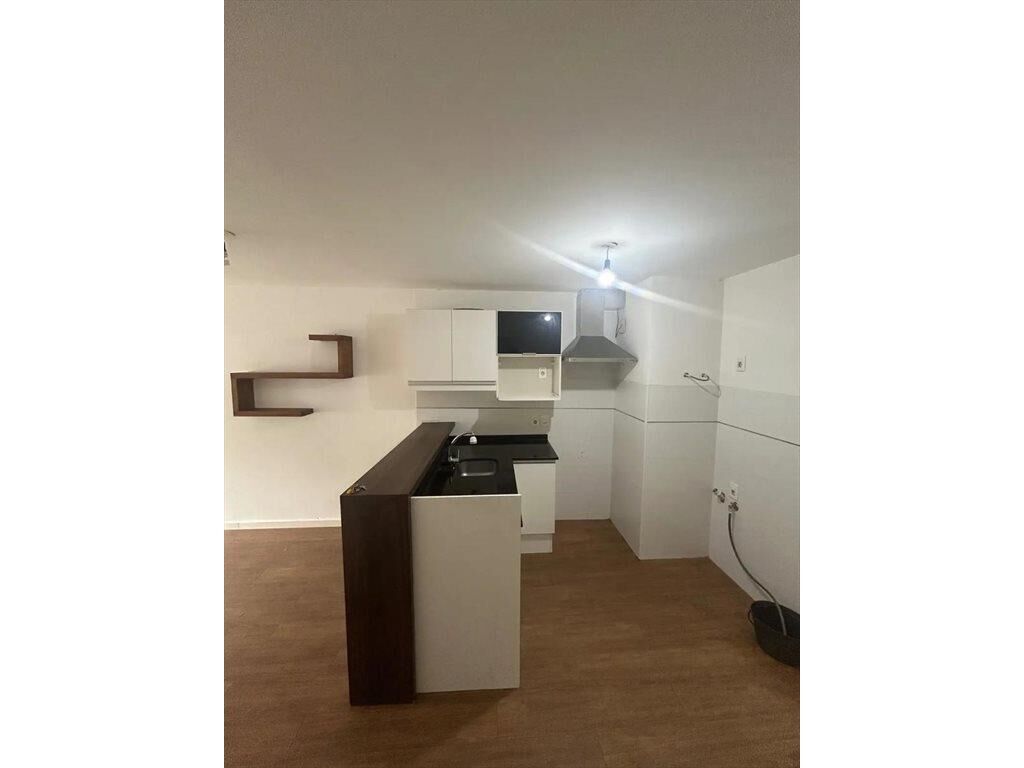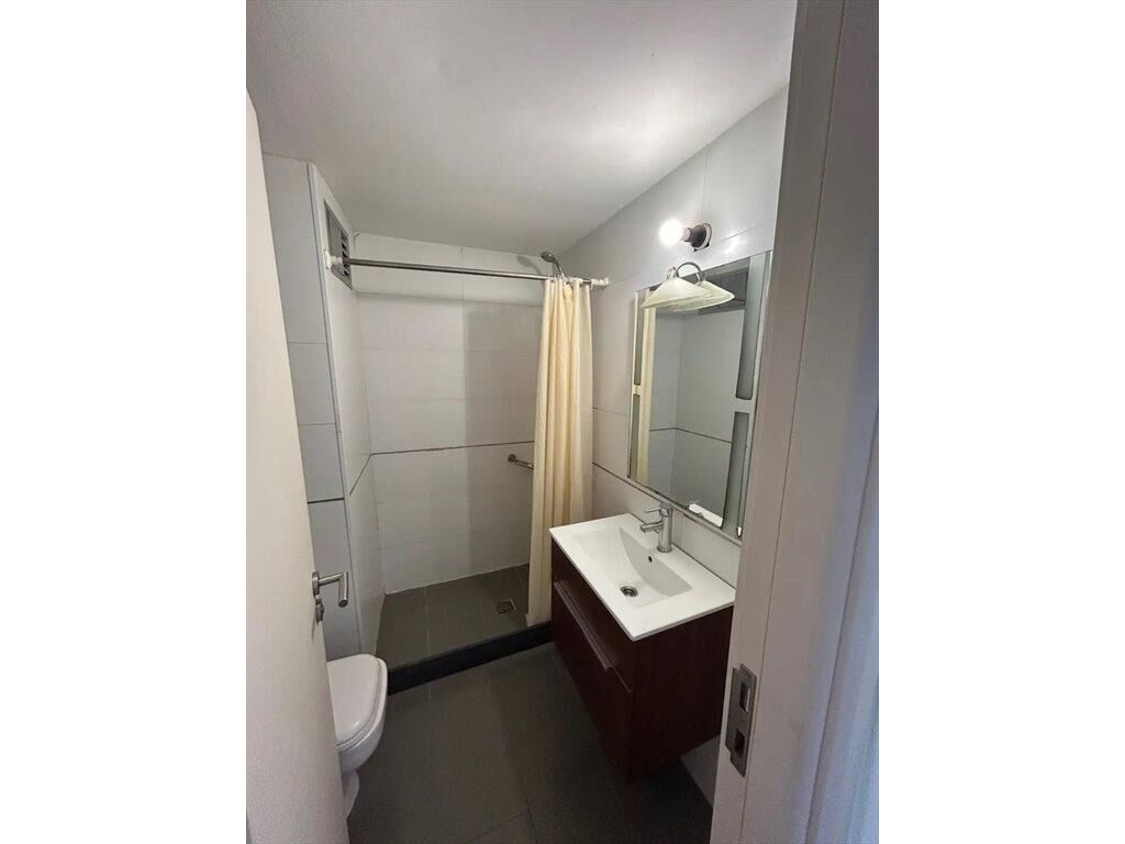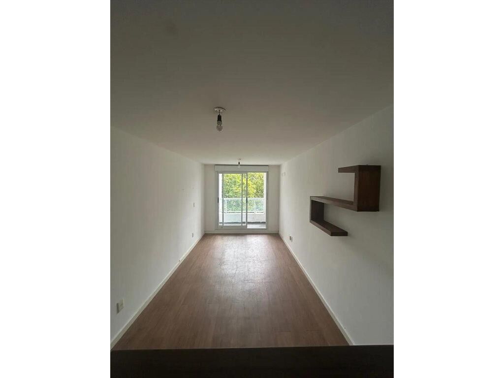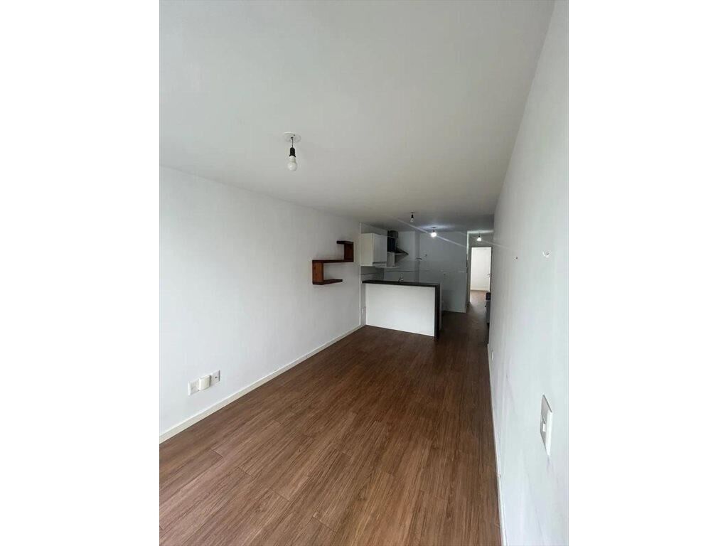 Cuenta con living comedor con cocina integrada, con desayunador y campana extractora.