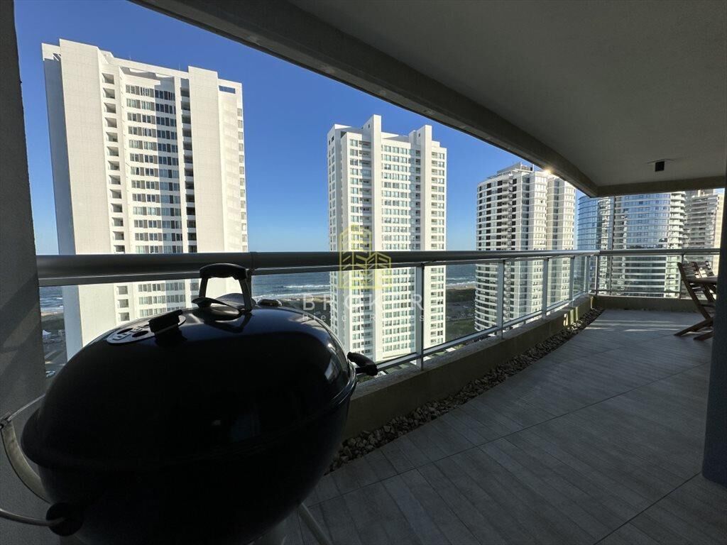 Esta ubicado en la parada 10 de la brava a 100 metros del mar, tiene una vista espectacular al mar y también a gran parte de la ciudad, cuenta con tres dormitorios y dependencia, cuatro baños, cocina definida y un living comedor amplio. Ademas su amplio balcón incluye también parrilla propia con vista al mar. La unidad cuenta con doble garage, super cómodo para familias grandes