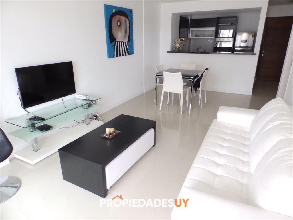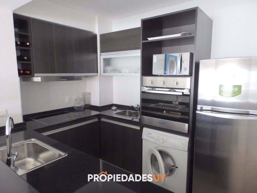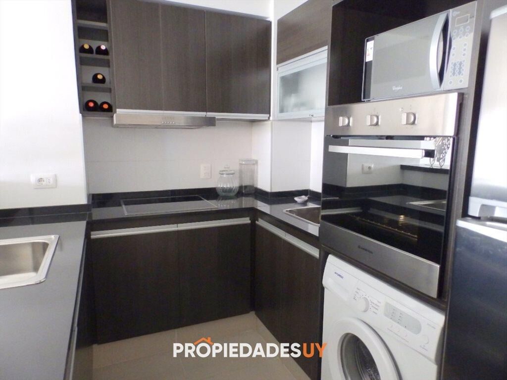 Amplia terraza, living comedor con cocina americana muy bien equipada, dos dormitorios, dos baños, uno en suite.