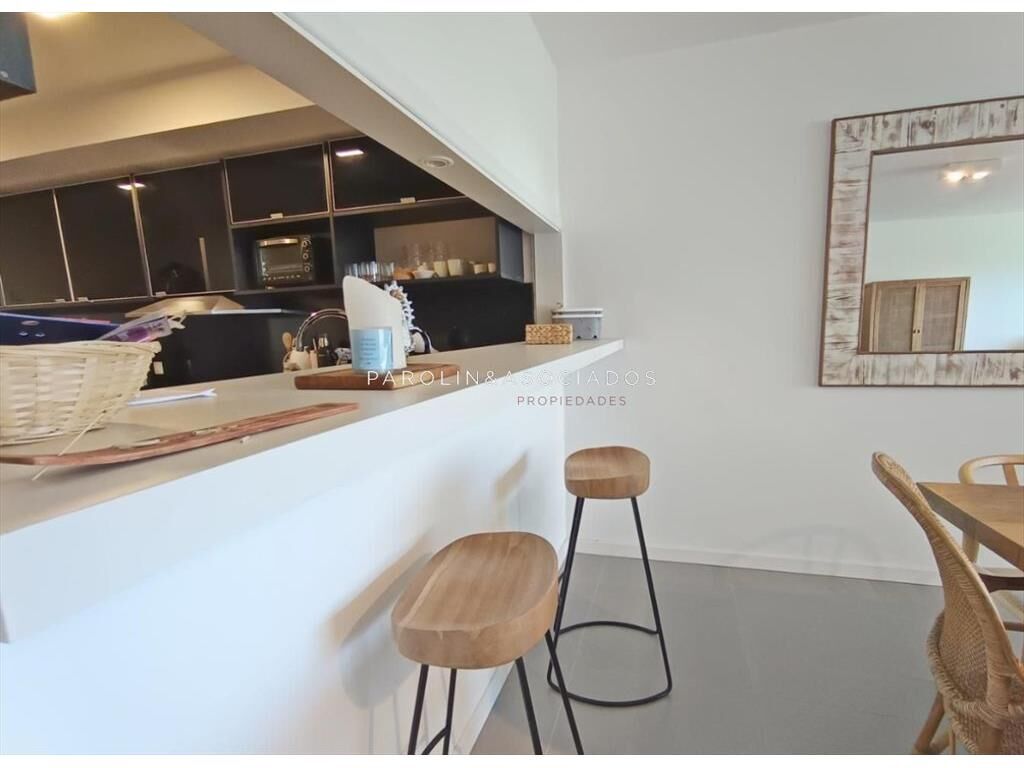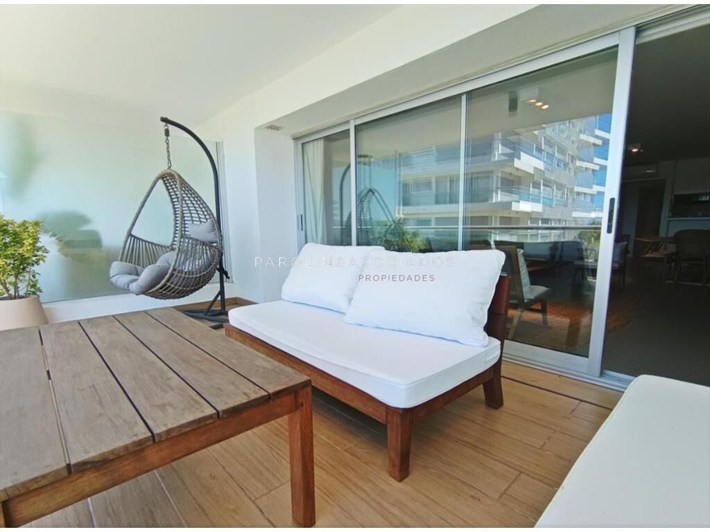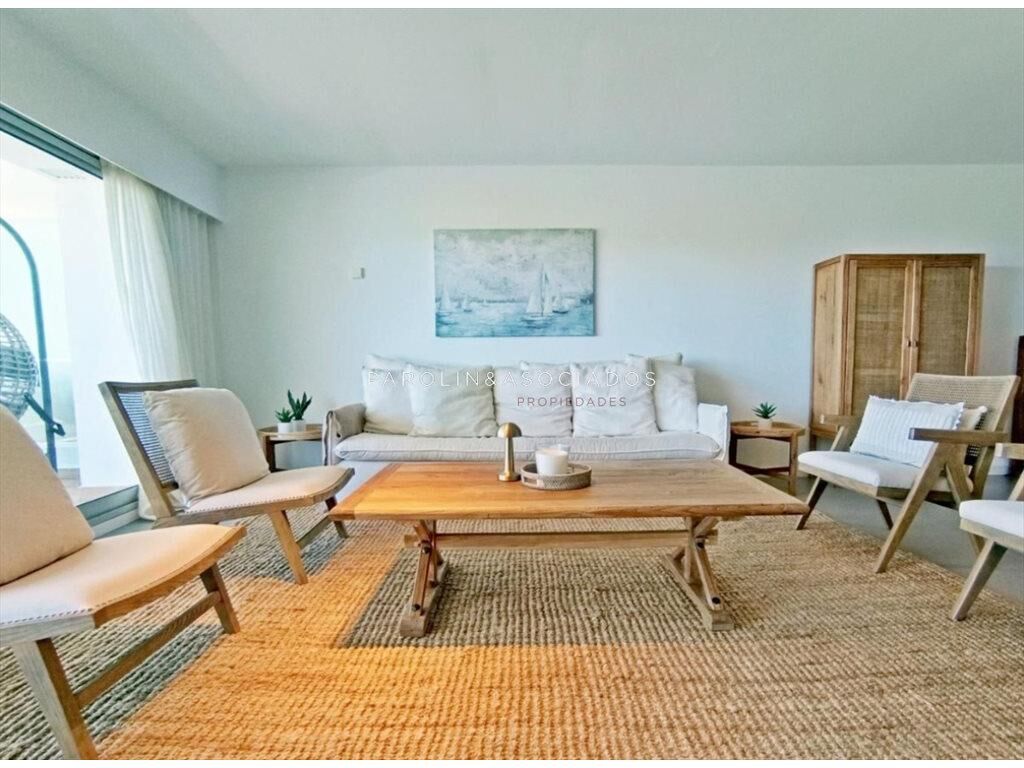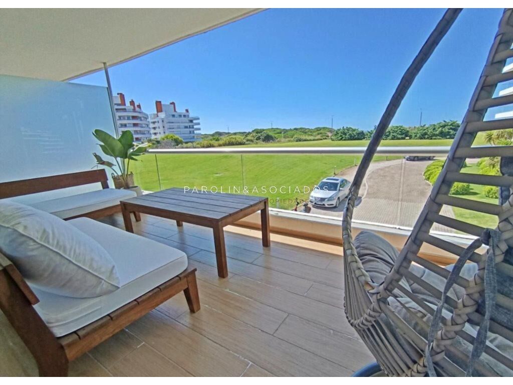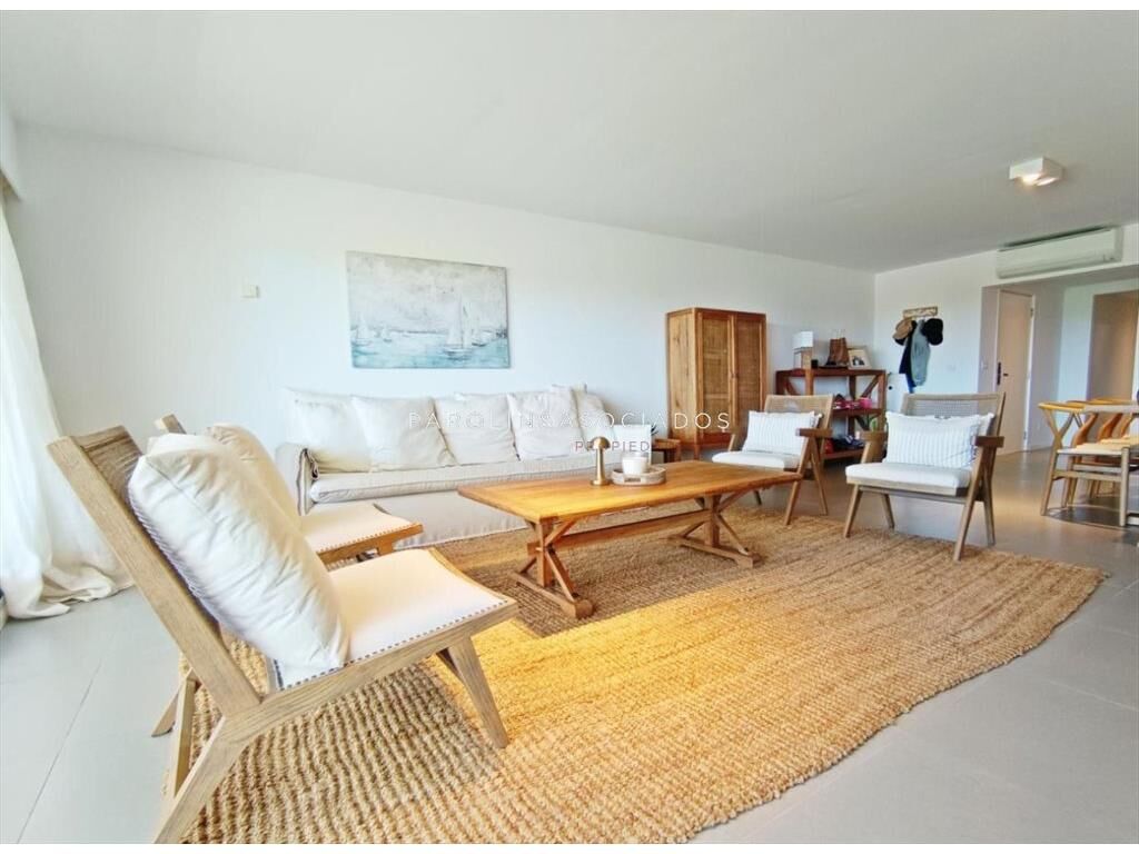 Amplio living-comedor con salida a la terraza, vista al mar, cocina con pasa platos, toilette, 2 cómodas suites con vestidor, dormitorio ppal con teraza vista al parque. Losa radiante sectorizada, aire acondicionado. Garaje doble. Complejo frente al mar con completos amenities de categoría.