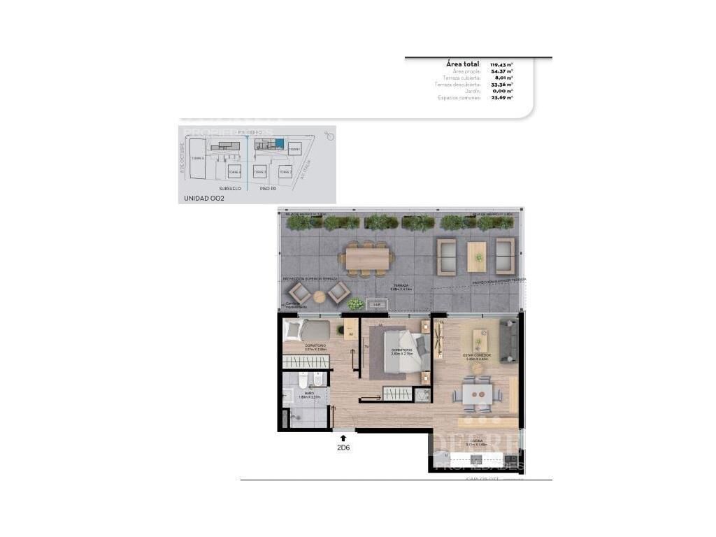 Solarium con equipamiento exterior, livings, paisajismo en cantero perimetral.