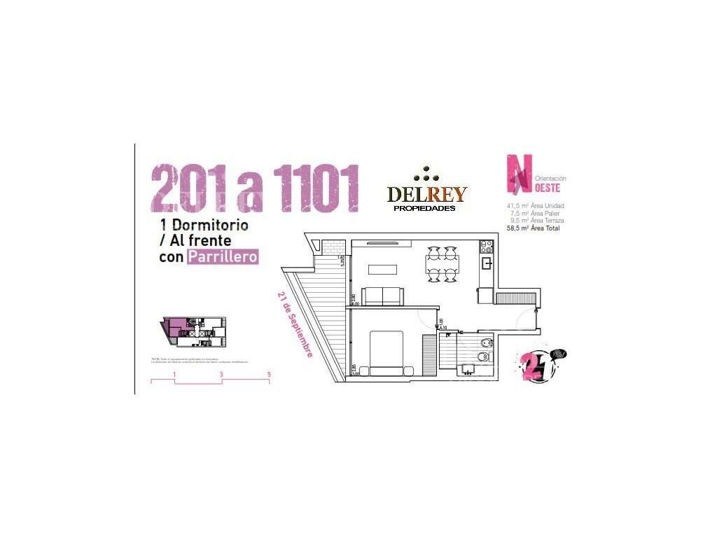 HERMOSO APARTAMENTO CON PARRILLERO. Cómodo living comedor con salida a la terraza con parrillero. Dormitorio con placares. Modernos cocina americana y baño, INNOVADOR PROYECTO EN UNA UBICACIÓN ESTRATÉGICA. Ubicado en el barrio Parque Rodo, uno de los barrios mas destacados de la ciudad. Sobre la Av. 21 de Setiembre a tan solo 1 cuadra del Parque Rodó. Próximo a las facultades de Arquitectura, Ingeniería y Ciencias Económicas, distintos locales gastronómicos y bares, destacando la cercanía a la rambla. En el último nivel se diseñaron espacios de amenities donde se encuentra la barbacoa con parrillero, gimnasio y laundry para secado y lavado, todos los espacios conectados por una terraza solárium. Preinstalación de aire acondicionado. Construcción Tradicional AMENITIES Barbacoa. Lavandería Solárium Salón de usos múltiples GYM FORMAS DE PAGO Y DESCUENTOS Admite Préstamo Bancario CONTADO Reserva 10% Compromiso 80% Ocupación 10% Descuento 5% DURANTE OBRA Reserva 10% Compromiso 20% Durante Obra 60% Ocupación 10% Descuento 3% FINANCIACIÓN CON BANCO Reserva 5% Compromiso 5% Durante Obra 10% Ocupación 80% GASTOS OCUPACIÓN 4.5% FONDO de RESERVA 0.25% GARAJES desde U$S 18.000. doble desde U$S 25.000. CONSULTE! .