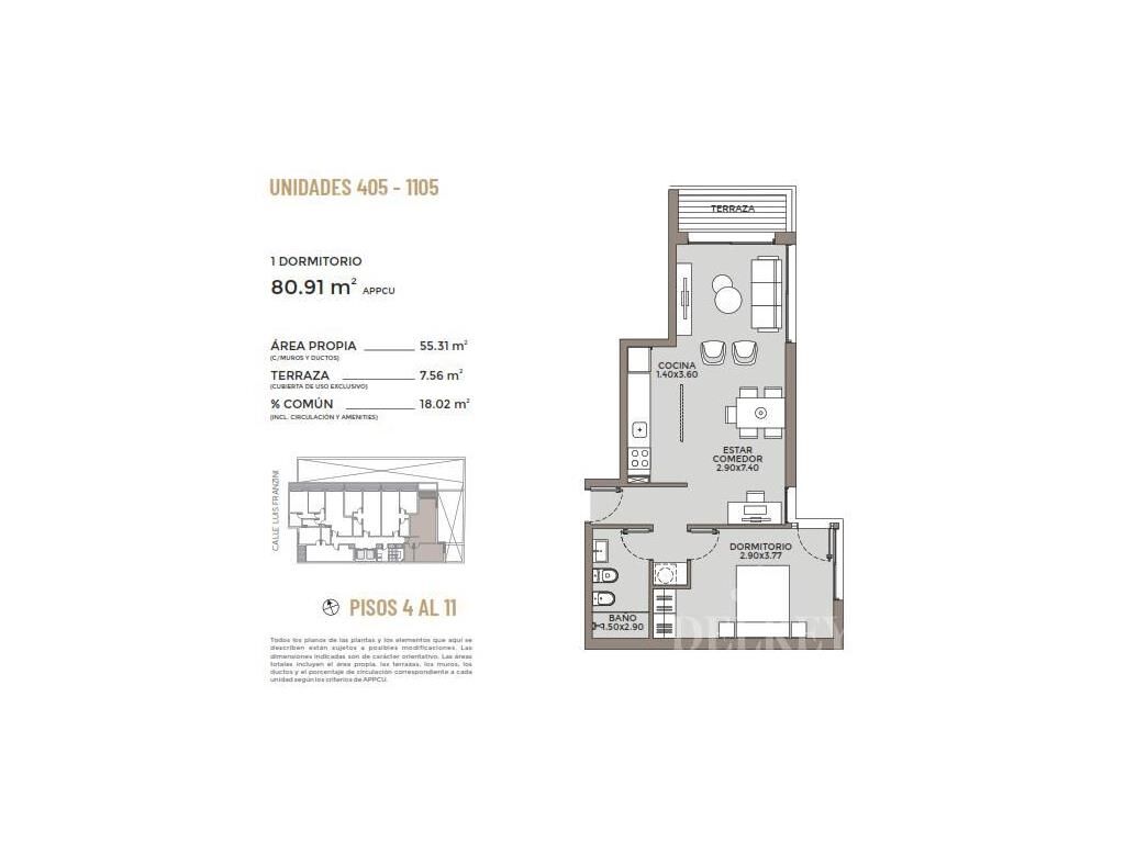 Venta apartamento 1 dormitorio con terraza en Pocitos