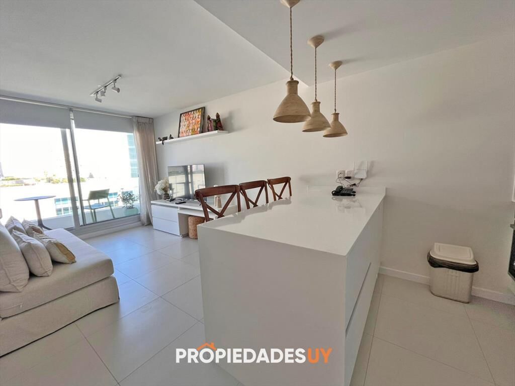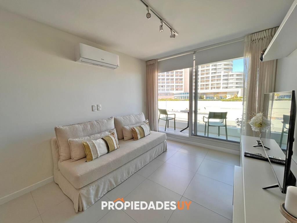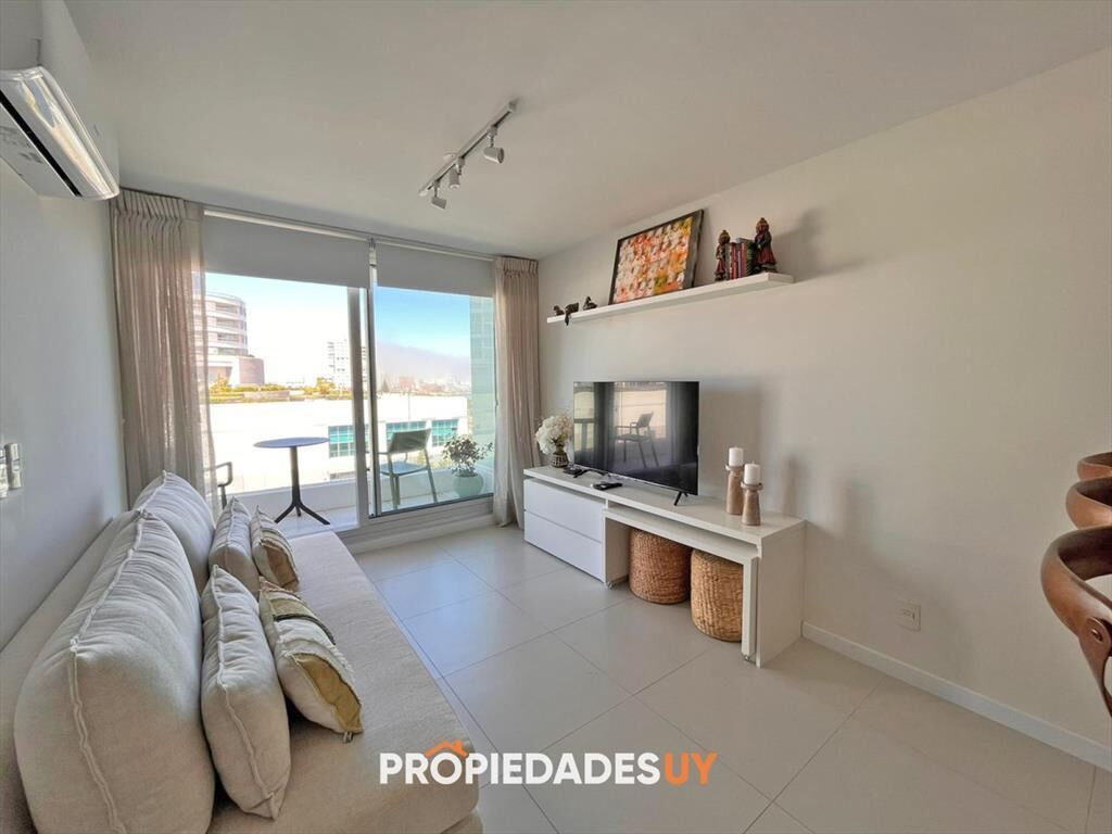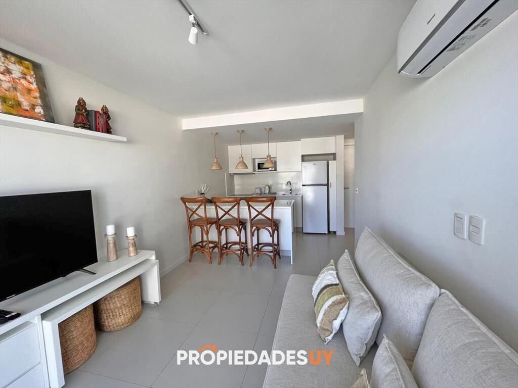 Living comedor con cocina americana, aire acondicionado en el living y en el dormitorio.