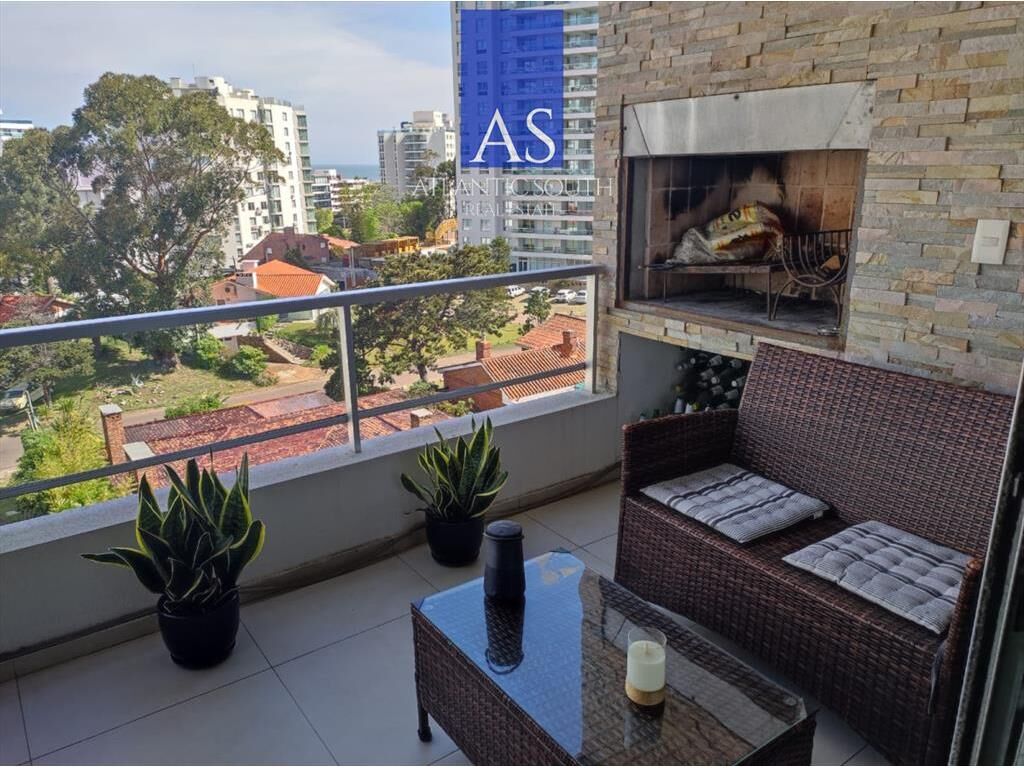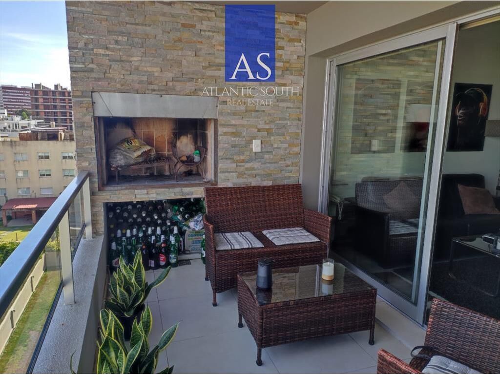 Departamento de 2 dormitorios, 2 baños, living comedor, cocina integrada, disfrutable terraza con parrillero, vista al mar, y cochera.el edificio tiene piscina y gym .