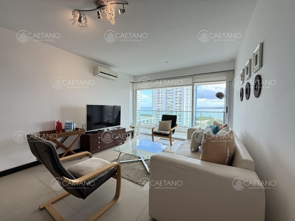 Departamento con vista a playa mansa , 2 dormitorios con 2 baños living comedor, cocina, terraza lavadero con Parrillero, terraza al frente con vista al mar y garage,