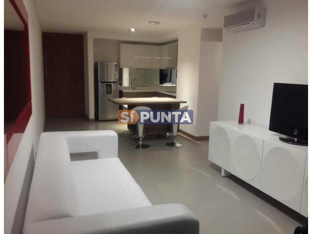 Living con Aire acondicionado, sofá cama, TV Cable. Dormitorio principal con cama matrimonial, aire acondicionado, persianas eléctricas, TV Cable.