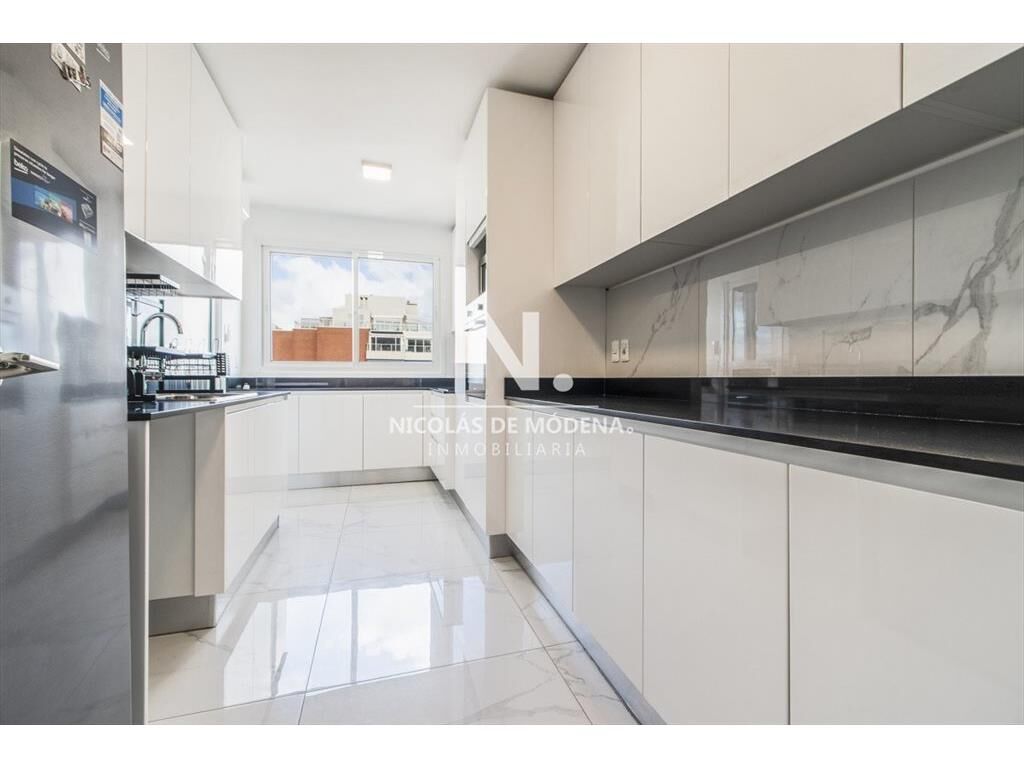 La cocina está definida, y bien equipada para la preparación de alimentos. Además, el apartamento cuenta con espacios de estar diferenciados, como el living y el comedor, que brindan áreas específicas para relajarse y disfrutar de comidas en un ambiente cómodo.