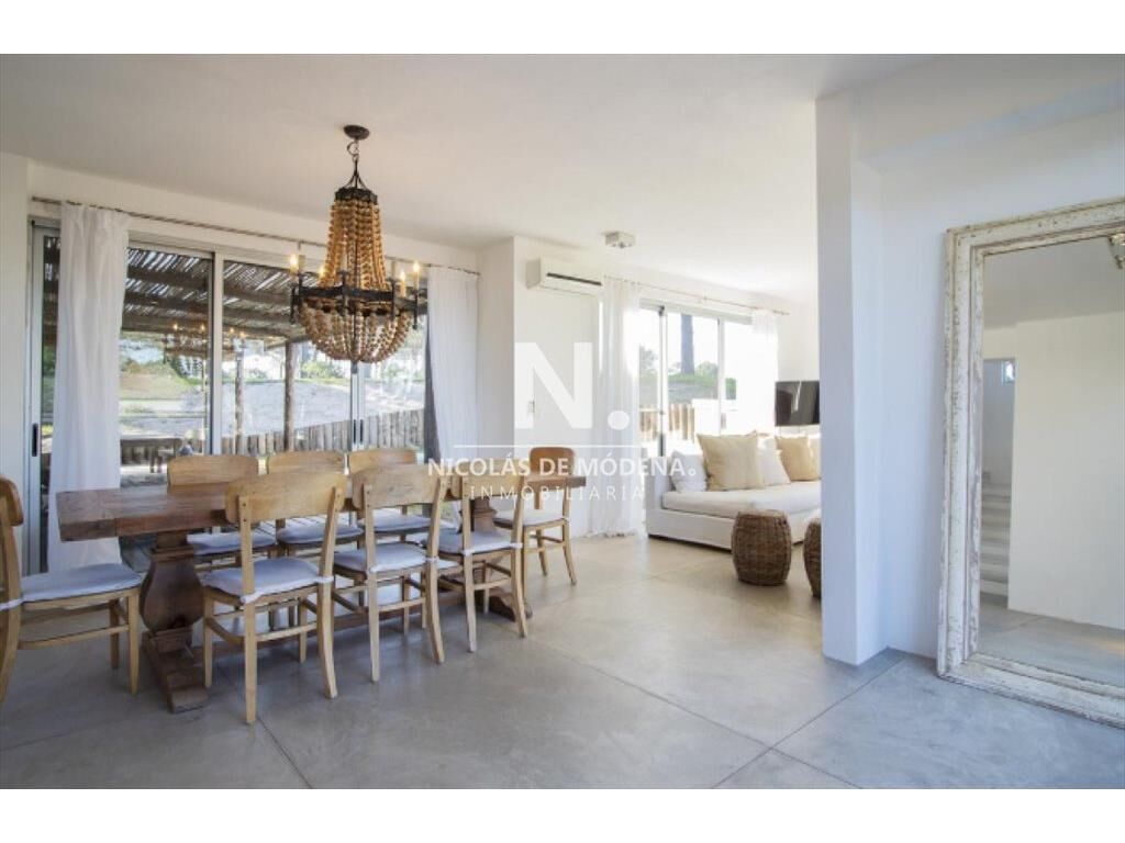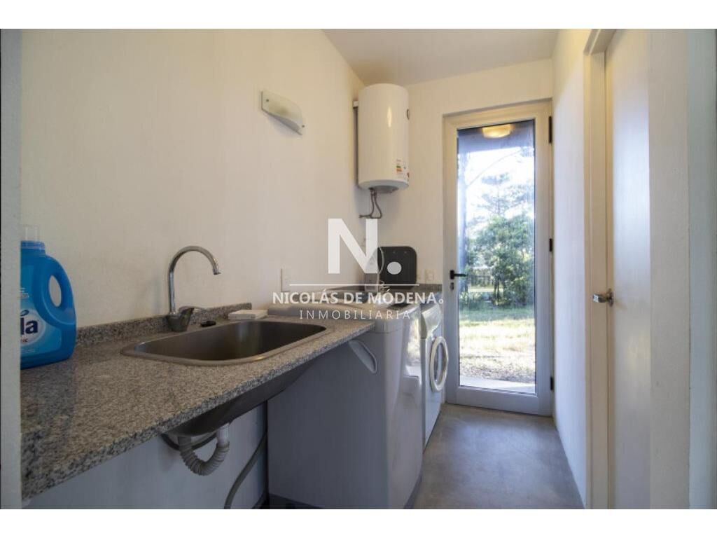 En la planta baja se integra un amplio living comedor de concepto abierto, que se comunica de manera fluida con una cocina cómoda y moderna, equipada con mobiliario de alta gama y electrodomésticos de primer nivel. Este ambiente se complementa con un toilette, diseñado para atender las necesidades de visitas, y con una dependencia de servicio contigua a la cocina, que optimiza la operatividad diaria de la casa.