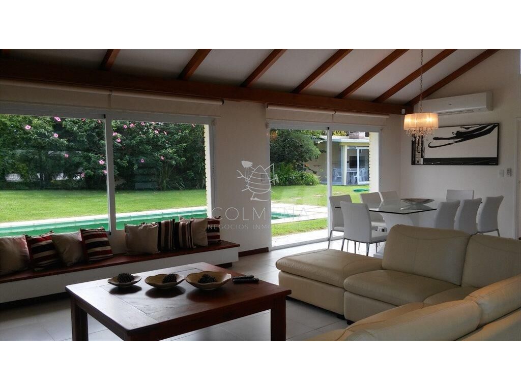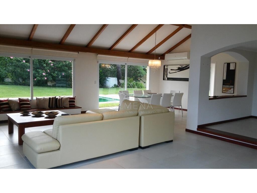 La casa cuenta con todas las comodidades y todo nuevo, muy completa con 4 dormitorios (2 en suite), dependencia de servicio, 5 baños, un gran living con estufa a leña y comedor, cocina definida, completa y lavadero, aire acondicionado en cada habitación, Piscina climatizada, parrillero, riego automático, iluminación exterior automatizada, cochera, perímetro cerrado.