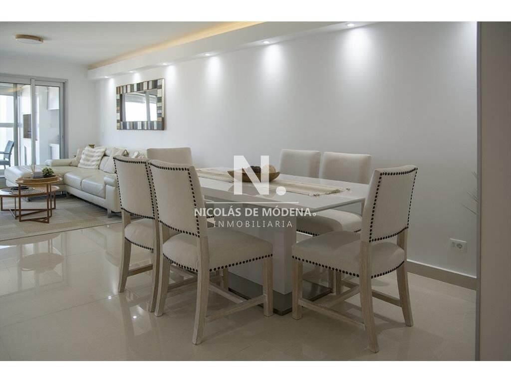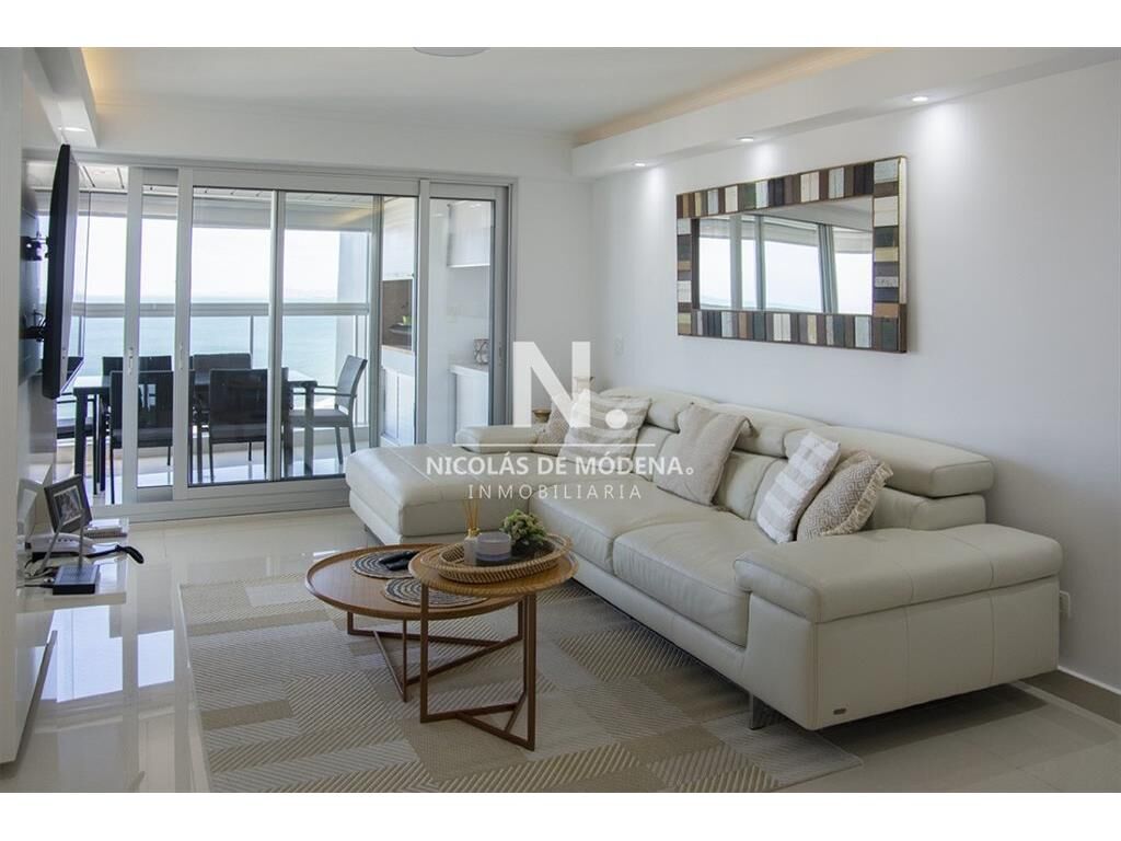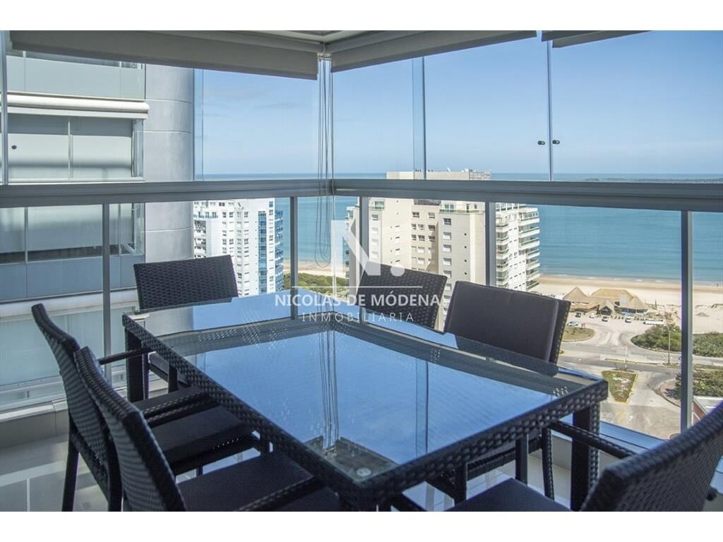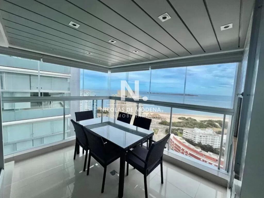 Cómodo apartamento a metros del mar. Excelente ubicación. Torre moderna con amplia gama de amenities. Unidad con espectacular vista a Playa Mansa.2 dormitorios con 2 baños (1 suite).Living-comedor con salida a terraza cerrada al frente.Cocina definida. Superficie : 93 m2 Equipamiento : Aire Acondicionado - T.V. - Consulte con nuestros asesores.