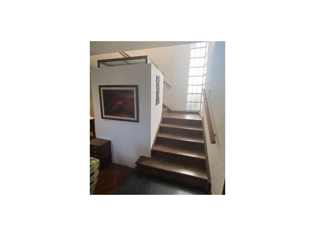 Escalera de madera con iluminación natural. Gran placard con lugar de guardado en hall de distribución en planta alta.