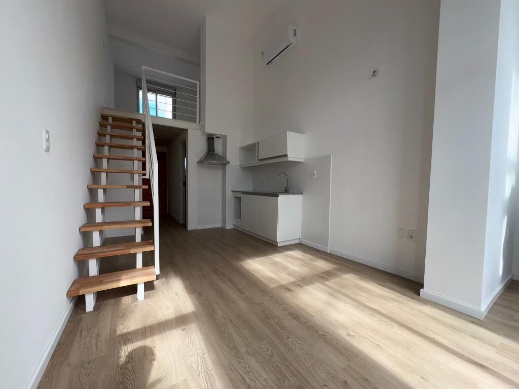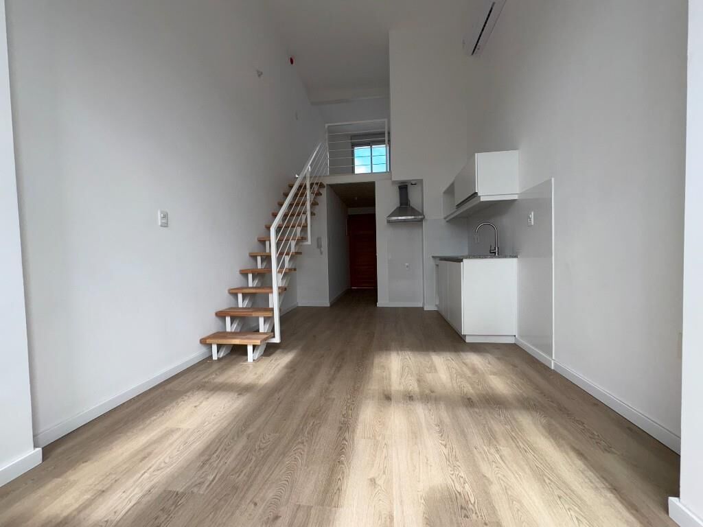 El apartamento se desarrolla en 2 plantas, cuenta en planta baja con living comedor con cocina integrada, cómodo baño, y espacio para escritorio. En planta alta cuenta con dormitorio.