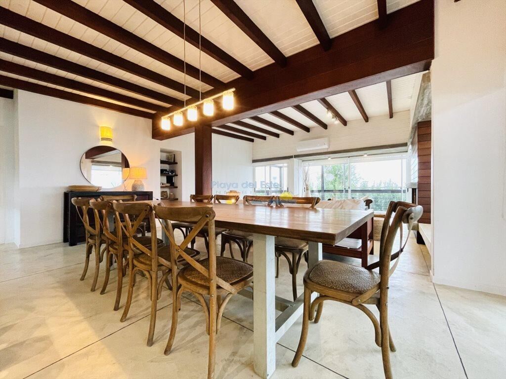 Dispone de amplio living comedor con excelente vista hacia el mar, estufa a leña, y salida al deck que rodea toda la planta alta; donde está ubicado el parrillero y estar exterior. Cocina bien equipada. Cinco cómodos dormitorios, dos de ellos en suite, más dependencia de servicio con baño (capacidad para 11 plazas en confortables sommiers).