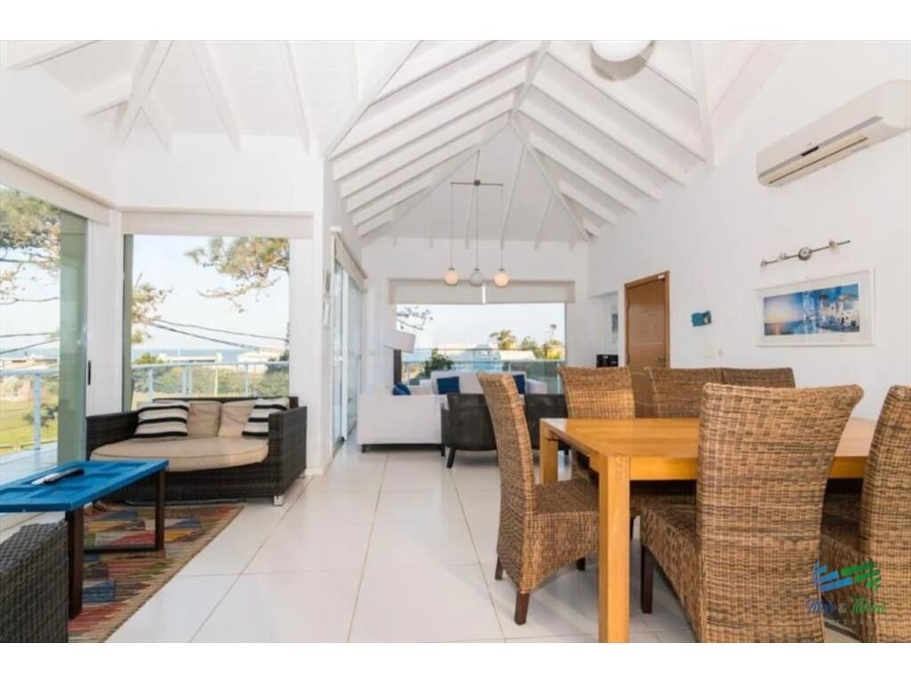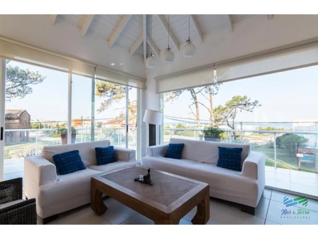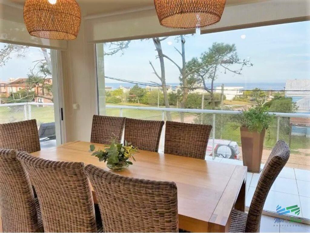 Distribuida en dos cómodas plantas con muy buena luz natural y vista al mar. Dispone de seis amplios dormitorios, cuatro de ellos en suite. Cocina completa, bien equipada. Gran living comedor en planta alta, con estufa a leña, y salida a las terrazas con vista.