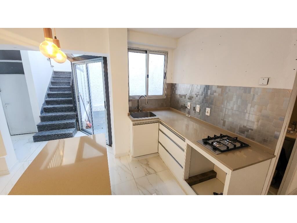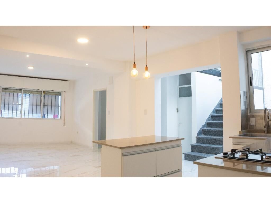 Living comedor amplio, orientado hacia el frente, con ventana hacia la calle, con persiana y reja. El mismo se encuentra Integrado a una hermosa cocina con ventana y salida al patio. Isla con cajones, mesada con pileta y placares. Anafe. Espacio y conexión para lavarropa.